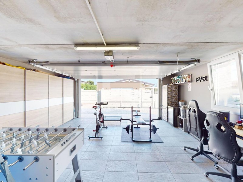 Dotazioni: riscaldamento a pavimento, pompa di calore, impianto fotovoltaico, impianto climatizzazione, impianto di irrigazione, piscina 24 mq, travi in legno sbiancate a vista, tapparelle elettriche.