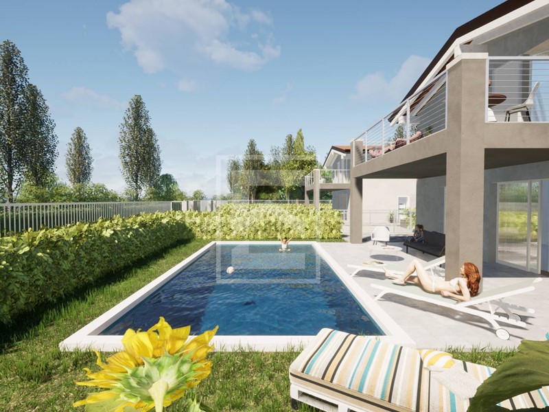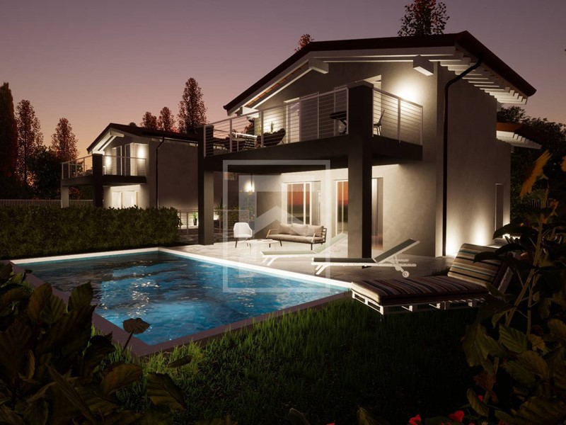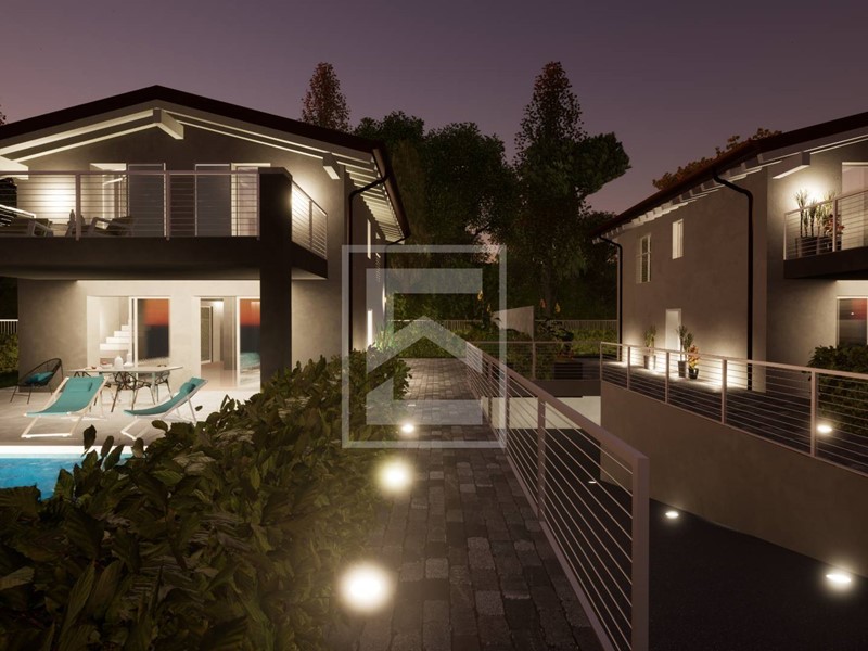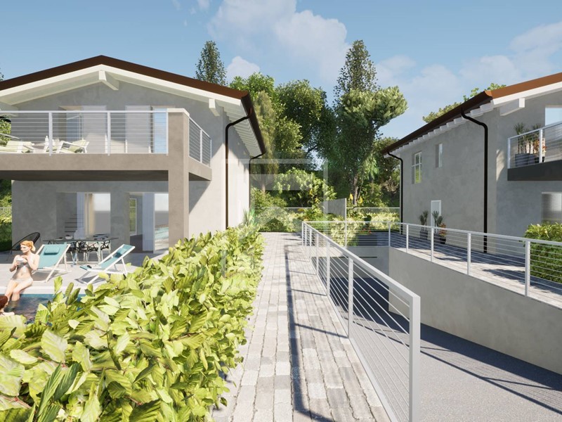 Le Ville saranno due ma completamente indipendenti, dai caratteri semplici ed eleganti, circondate da giardino e piscina privati; ogni villa dispone di portico antistante di 20,50 mq, che ci porta al soggiorno interno e permette di godersi allombra il clima caldo del Lago di Garda, abbastanza ampio da ospitare un salotto o una sala pranzo esterni. Al di sopra del portico, troviamo un ampio terrazzo di 20,50 mq per godersi il panorama sul verde circostante specialmente al tramonto. Le molteplici aperture permettono un collegamento con lesterno in più lati delledificio, in modo da rendere il giardino ben accessibile dai diversi locali.