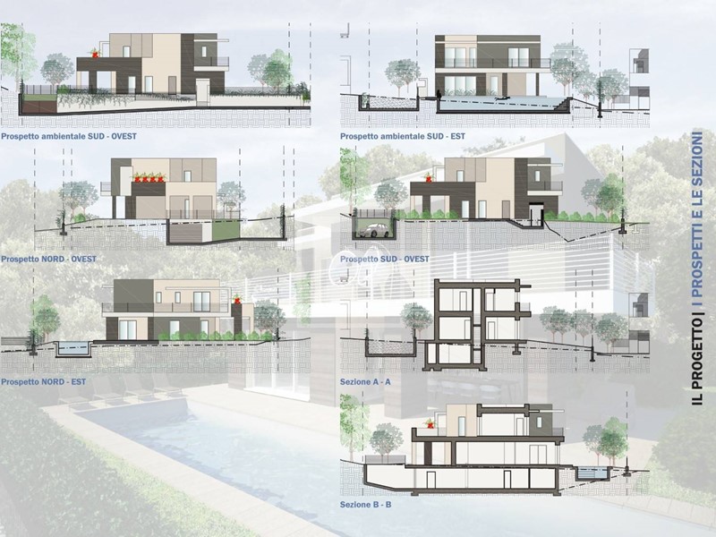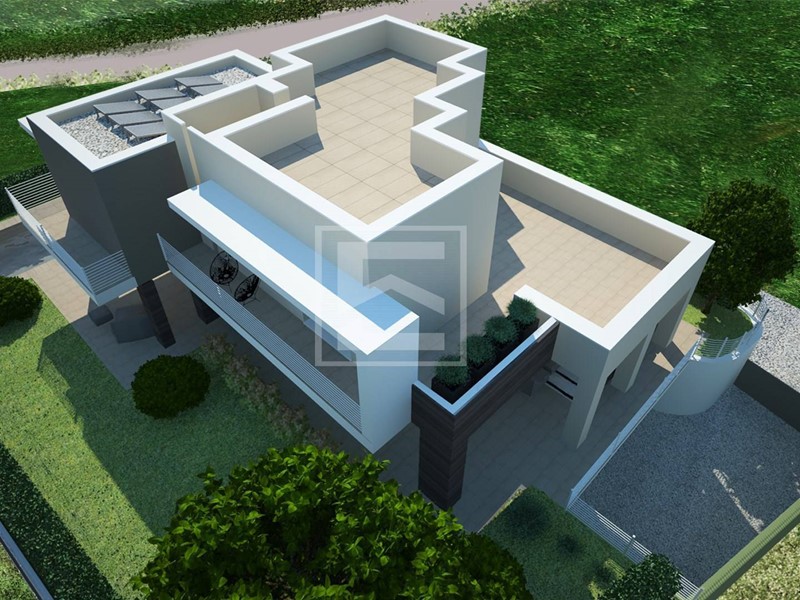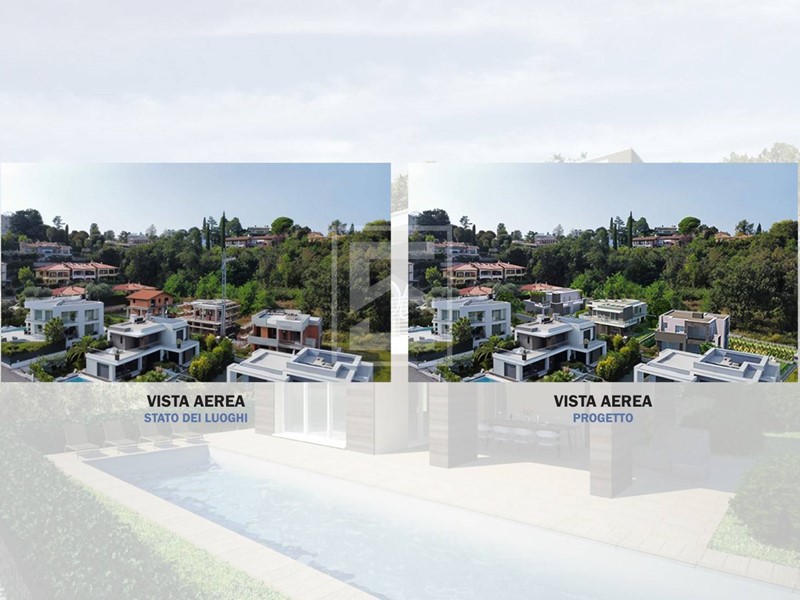 Moderna villa singola vista lago in fase di realizzazione con giardino e piscina privati situata in una delle zone residenziali più signorili di Padenghe sul Garda.