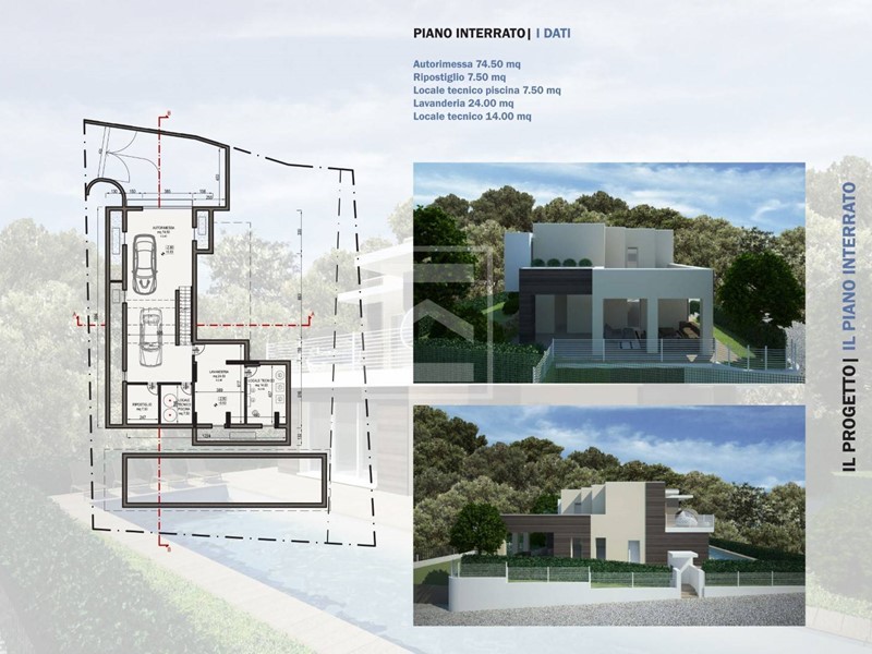 Sempre dalla scala interna si accede all'interrato dove è stata ricavata la zona lavanderia, il locale tecnico ed un generoso garage per tre autovetture di circa 75 mq.