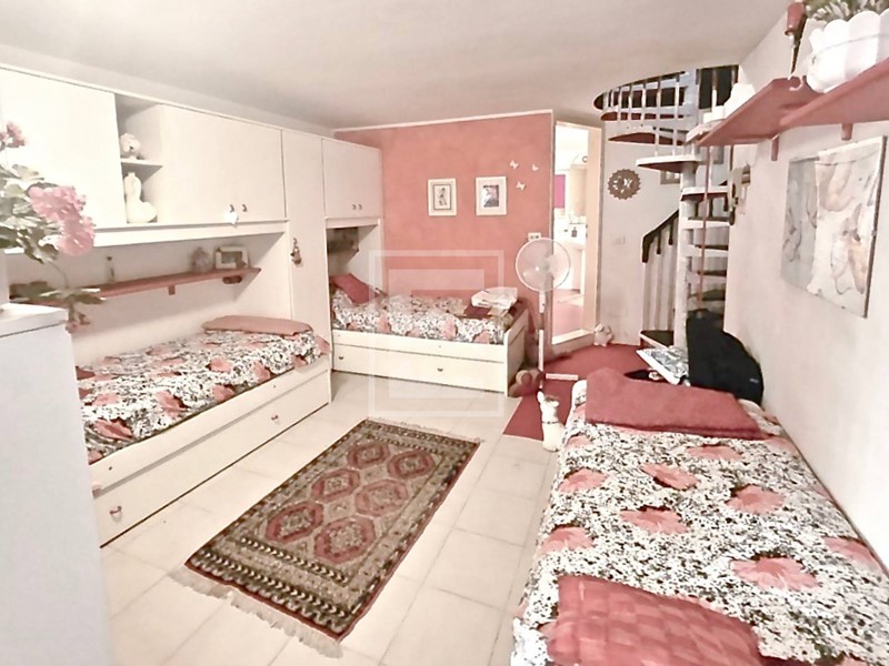 La zona notte è composta da una camera matrimoniale e un bagno. Attraverso la scala interna si accede al piano seminterrato dove si sviluppa un ampio ambiente (oggi adibito a seconda camera da letto) e un secondo bagno.