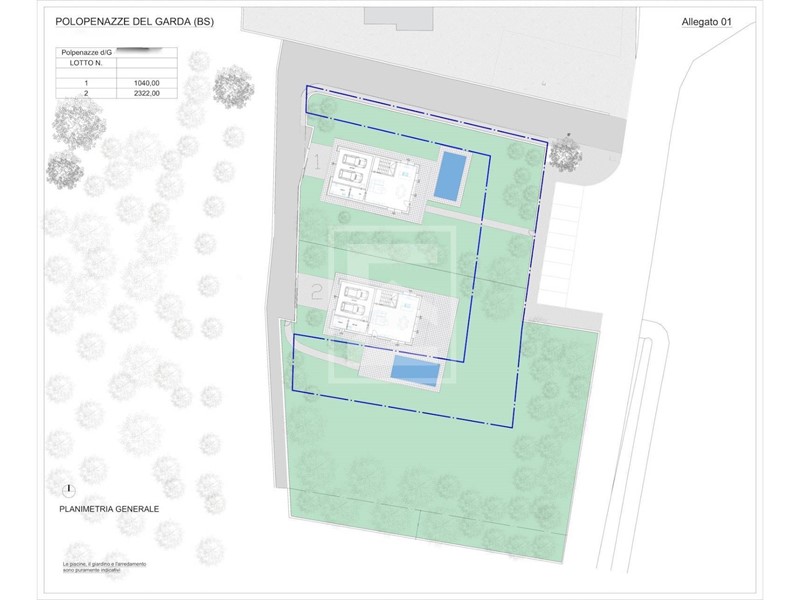 Le ville realizzate saranno 2, vi e' la possibilita' di acquistare il lotto accanto di 2.322 mq ad un prezzo maggiorato.