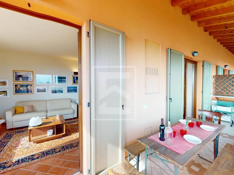 Il vero gioiello di questa splendida abitazione è rappresentato dall'ampio soggiorno con cucina a vista, impreziosito da un terrazzo abitabile che offre una vista mozzafiato sul lago di Garda e sul suggestivo paesaggio circostante.