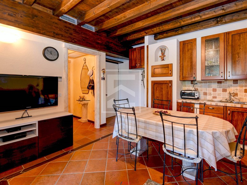 Le travi, le pareti, le cornici e l'arredo rendono l'appartamento molto accogliente e di buon stile.