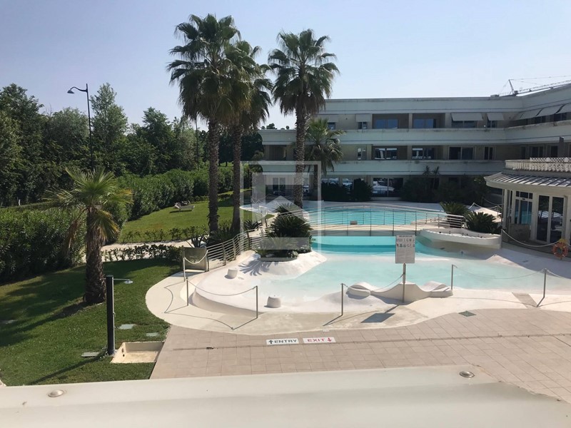 In uno splendido residence con una meravigliosa piscina caraibica, ove è possibile vivere piacevoli momenti di relax, proponiamo ampio trilocale posto al primo piano, servito da ascensore, con un grande terrazzo affacciato direttamente sulle magnifiche piscine. L'appartamento è completo di arredi e di ottime finiture, la zona giorno è arredata con cucina e soggiorno e attraverso il disimpegno si accede alla zona notte dove troviamo due spaziose camere con uscita sul terrazzo e bagno finestrato. Possibilità di acquistare posto auro coperto e cantina. Climatizzazione e riscaldamento con pompa di calore.
