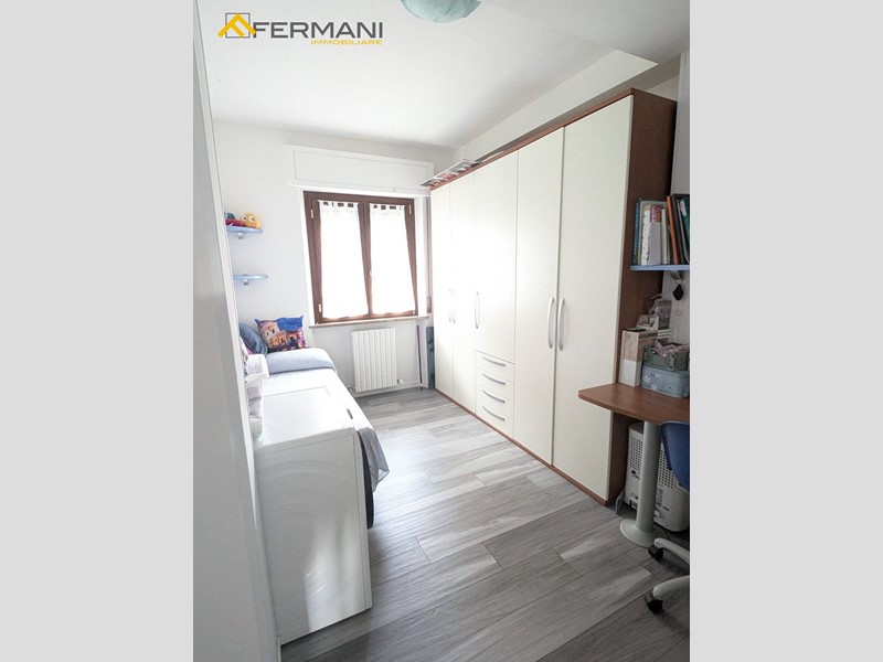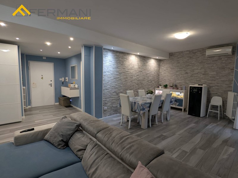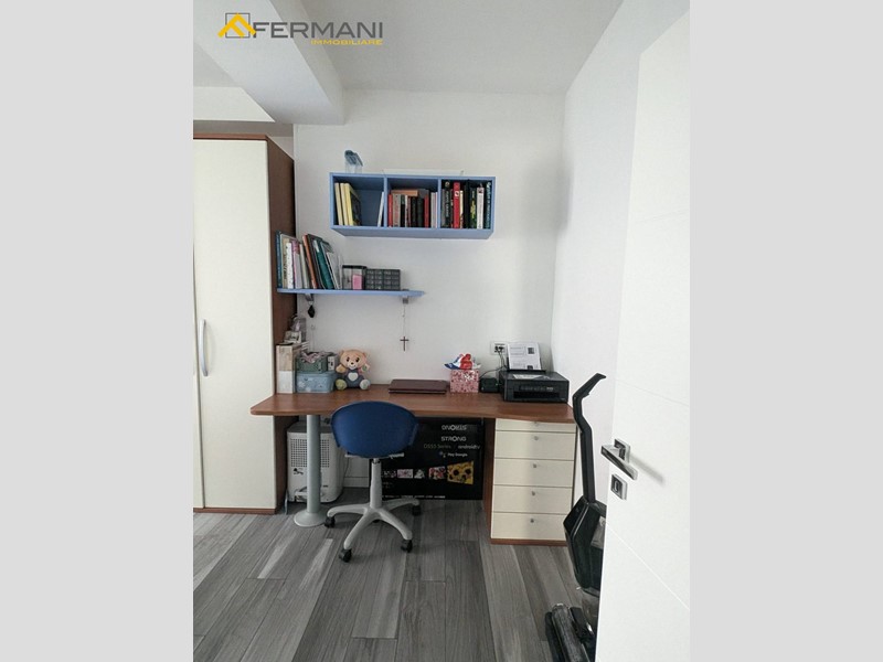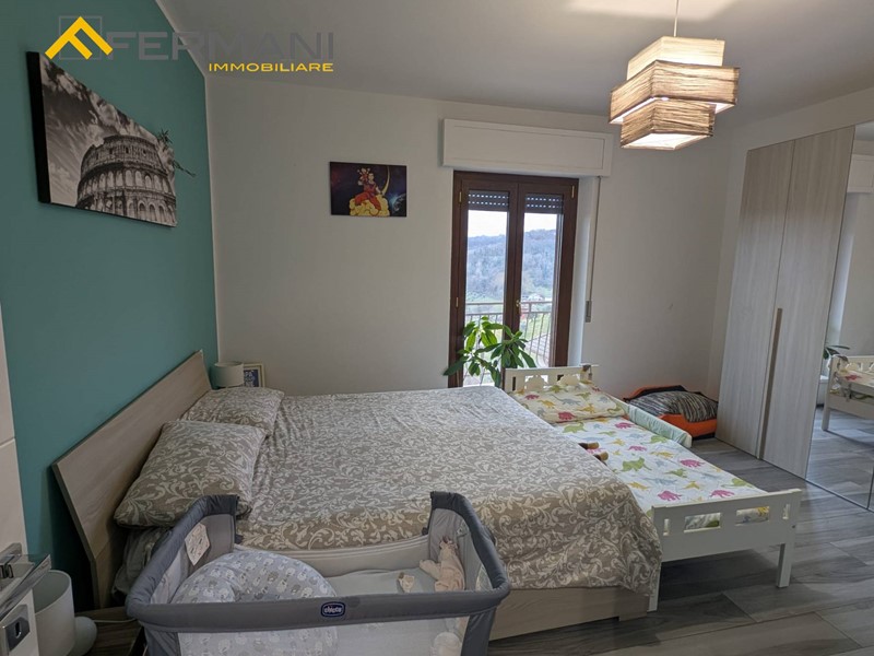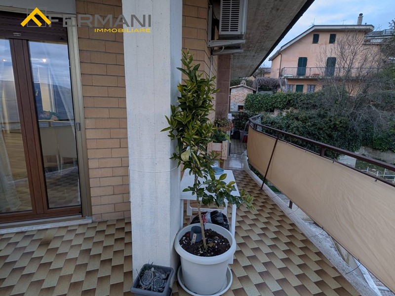 L'immobile è composto da ingresso su ampio soggiorno con accesso al balcone panoramico, cucina abitabile, disimpegno zona notte, 2 camere matrimoniali di cui una con bagno ed 1 camera singola, secondo bagno, 2 balconi esposizione est-sud-ovest.