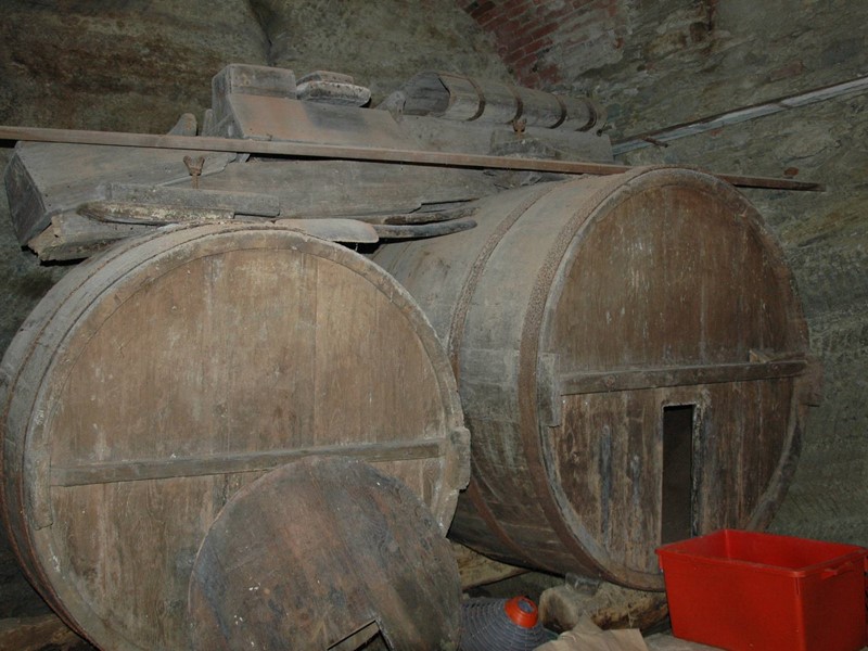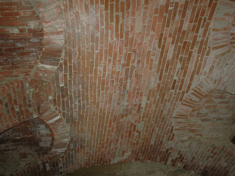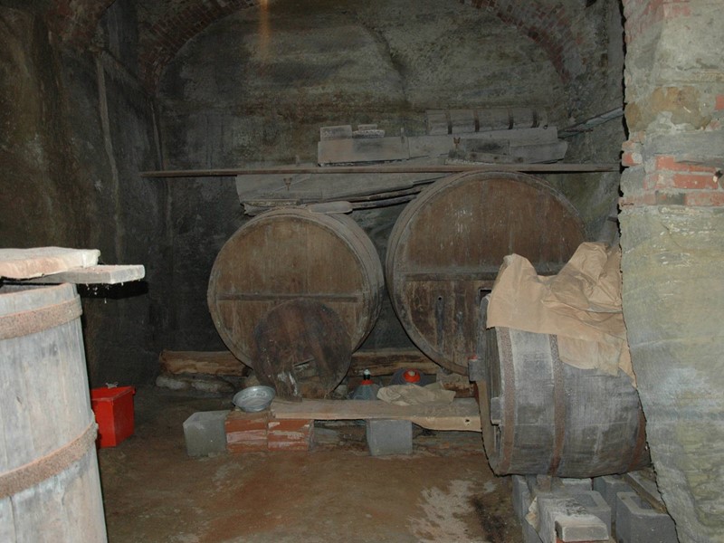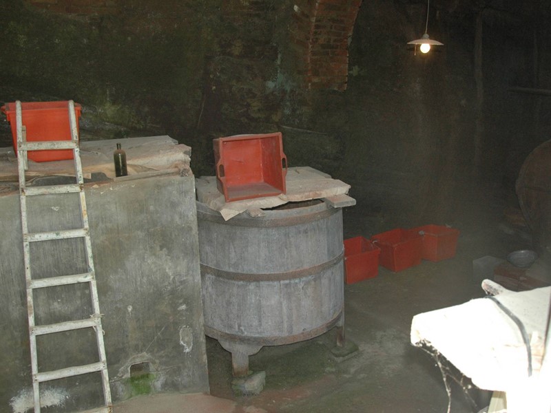 La generosa cantina dal soffitto a volta di mattoni rossi con l'immancabile di tufo ci accoglie con la temperatura che piace al vino, la vecchia stalla con ancora la mangiatoia in legno, la legnaia, il portico con il carro, il pozzo in giardino e la terra tutto intorno.