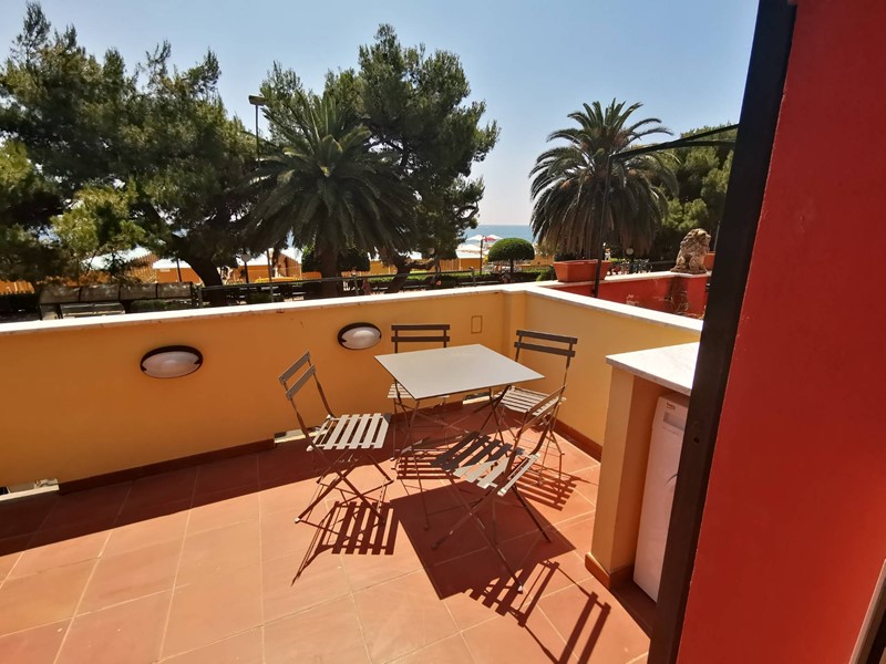 COMPOSIZ. VANI / DISTRIBUZ. POSTI LETTO: camera matrimoniale, sala con divano letto matrimoniale, cucinotto, bagno (doccia), terrazzo abitabile fronte mare.