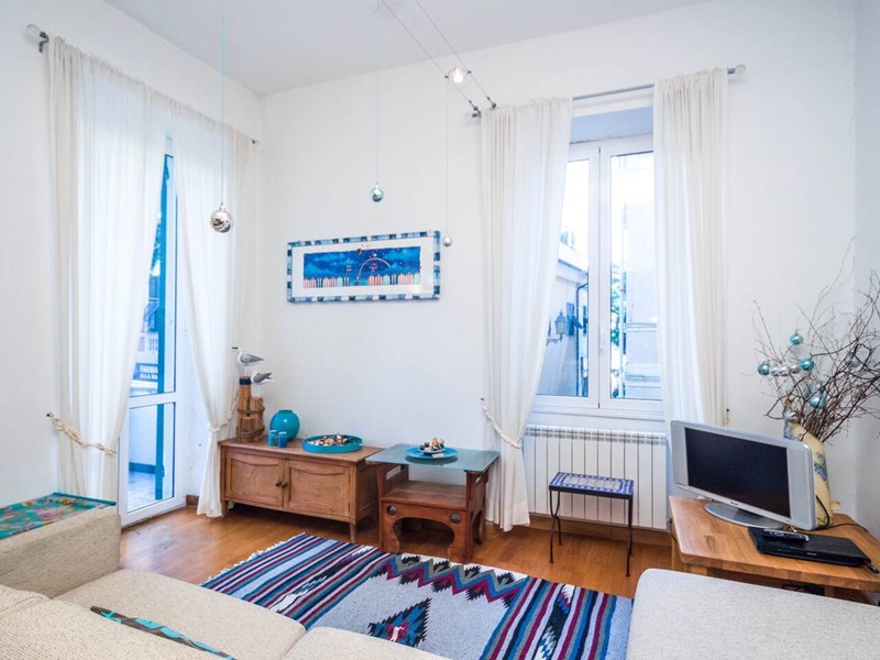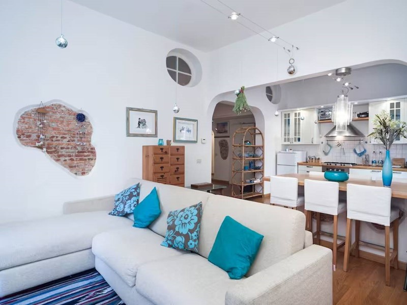 COMPOSIZ. VANI / DISTRIBUZ. POSTI LETTO: ingresso con divano letto a due posti, soggiorno con cucina a vista, camera matrimoniale, bagno (vasca e doccia).