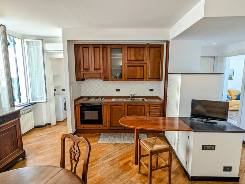 COMPOSIZ. VANI / DISTRIBUZ. POSTI LETTO: ingresso, camera matrimoniale, camera con divano letto singolo e rete singola, sala con cucina a vista, bagno (doccia).