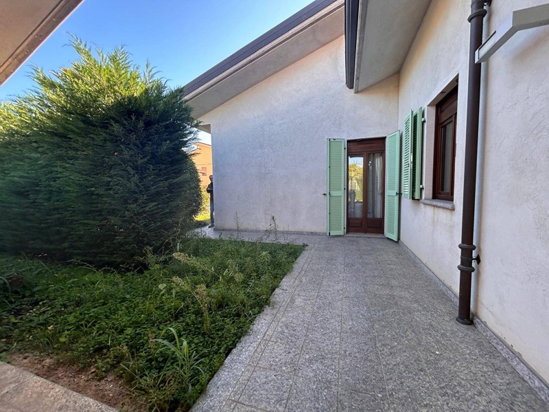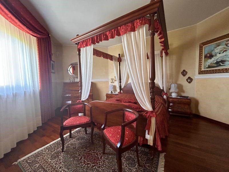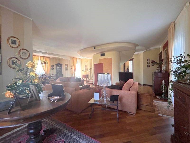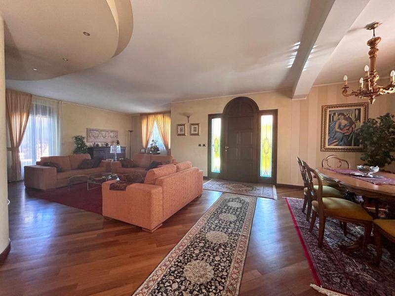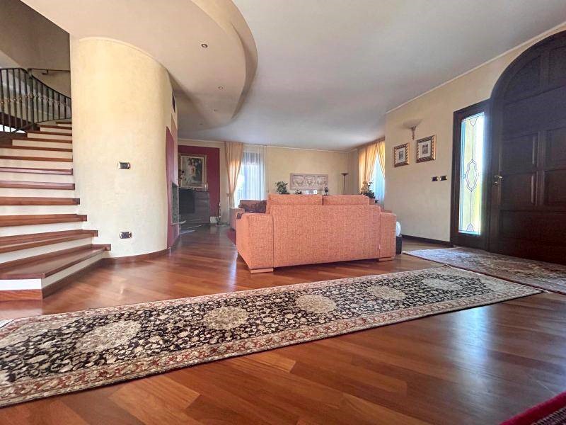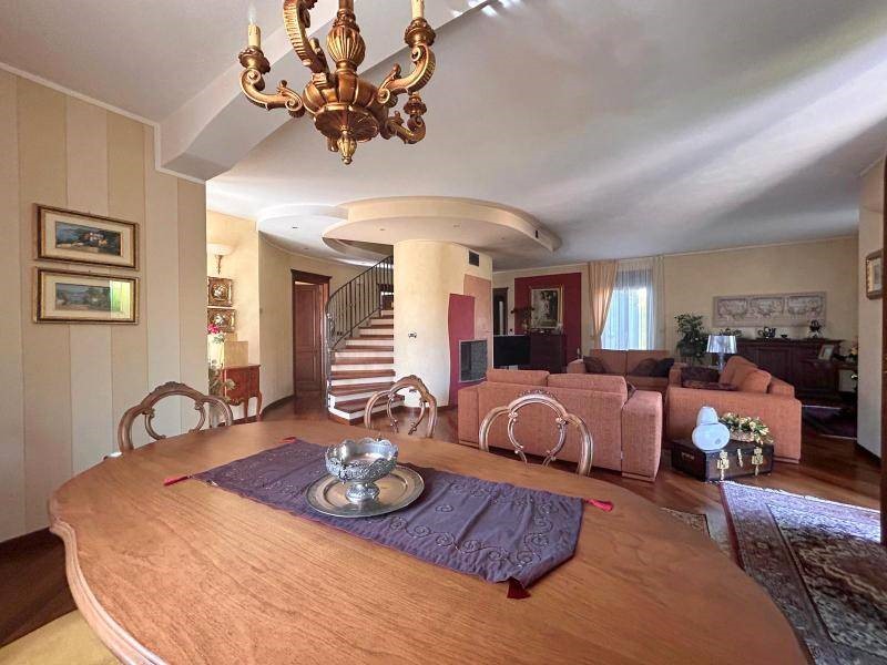 Nella zona residenziale, vicino al centro, la villa si presenta indipendente sui quattro lati con ampi spazi esterni ed interni. La soluzione al suo interno si presenta con ottime finiture di pregio molto luminosi adiacenti ai terrazzi e giardino che la circonda sui quattro lati. L'ingresso si apre direttamente sulla zona giorno pavimentate completamente in parquet con caminetto a vista; la cucina è abitabile è ha l'accesso sul terrazzo privato dove si può comodamente mangiare anche all'esterno, la zona notte al piano terra si compone di due camere da letto di cui la matrimoniale a un'ampia cabina armadio personale; i bagni sono dotati di doccia e vasca idromassaggio e rifiniti con materiali eleganti. Al piano di sopra, tramite la scala in ferro, si accede alla seconda zona notte composta da due camere da letto, la cabina armadio, un ripostiglio e il bagno dotato di doccia. Completa la proprietà il garage di 57/mq, la taverna, il locale caldaia e la cantina. All'esterno inoltre ha un ampio giardino privato con due porticati. La soluzione è ottima per chi cerca grandi spazi con finiture di pregio.