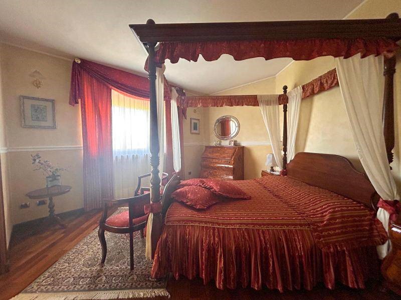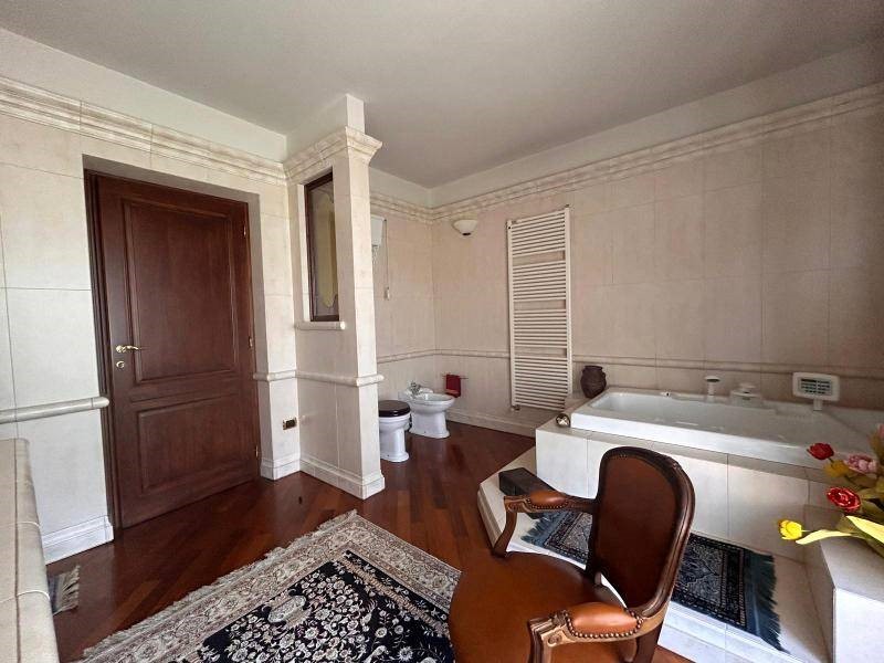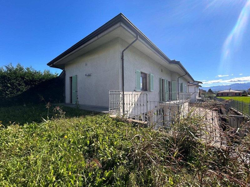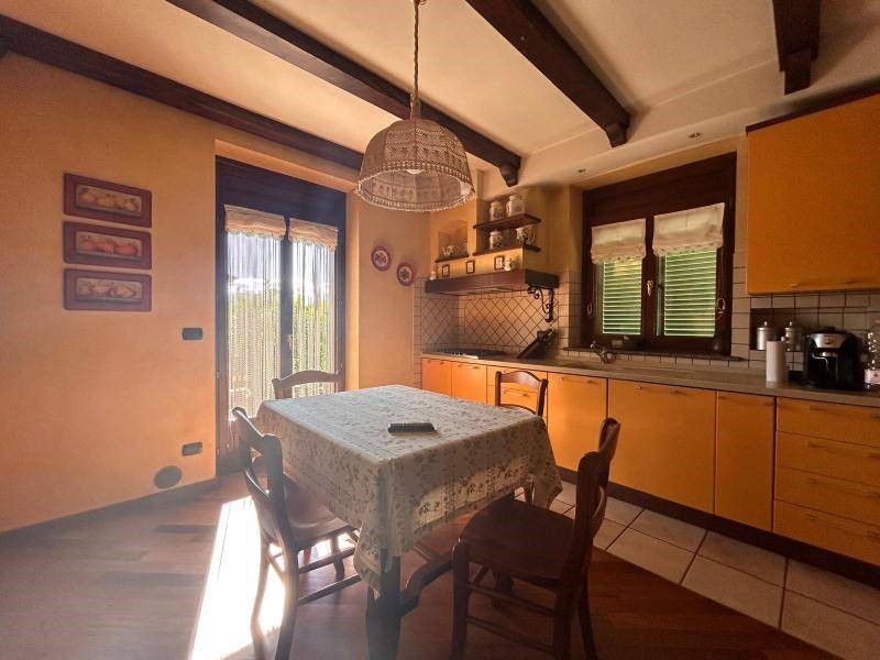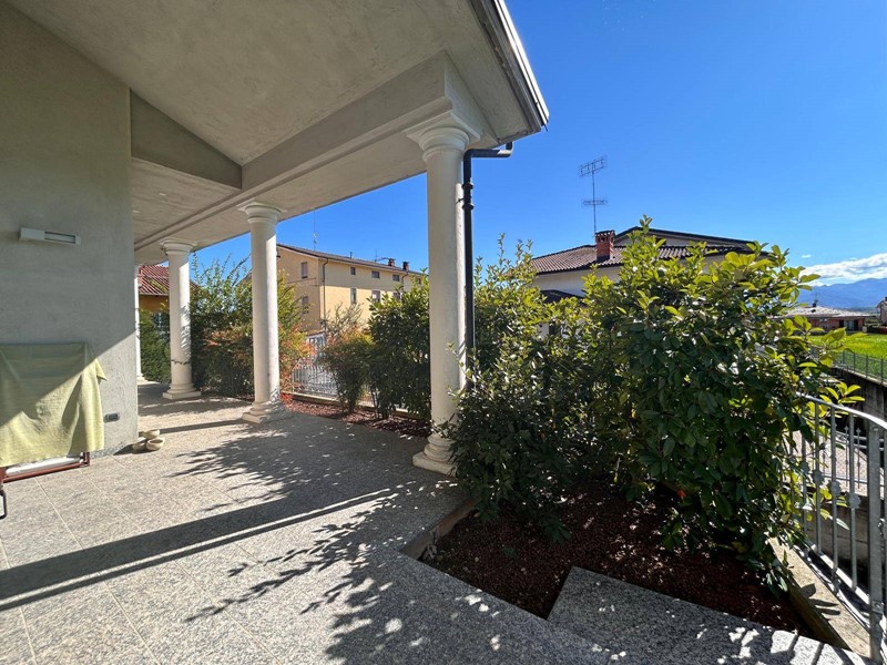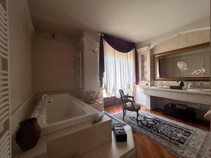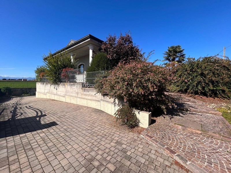 Nella zona residenziale, vicino al centro, la villa si presenta indipendente sui quattro lati con ampi spazi esterni ed interni. La soluzione al suo interno si presenta con ottime finiture di pregio molto luminosi adiacenti ai terrazzi e giardino che la circonda sui quattro lati. L'ingresso si apre direttamente sulla zona giorno pavimentate completamente in parquet con caminetto a vista; la cucina è abitabile è ha l'accesso sul terrazzo privato dove si può comodamente mangiare anche all'esterno, la zona notte al piano terra si compone di due camere da letto di cui la matrimoniale a un'ampia cabina armadio personale; i bagni sono dotati di doccia e vasca idromassaggio e rifiniti con materiali eleganti. Al piano di sopra, tramite la scala in ferro, si accede alla seconda zona notte composta da due camere da letto, la cabina armadio, un ripostiglio e il bagno dotato di doccia. Completa la proprietà il garage di 57/mq, la taverna, il locale caldaia e la cantina. All'esterno inoltre ha un ampio giardino privato con due porticati. La soluzione è ottima per chi cerca grandi spazi con finiture di pregio.