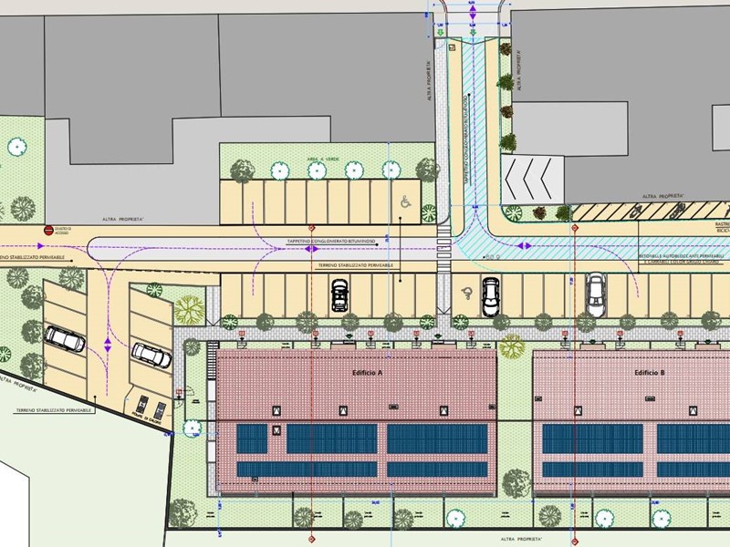 Mentre per quanto riguarda gli spazi comuni verranno realizzate aree verdi condominiali, progettate per offrire relax e connessione con la natura, e parcheggi di varie superfici acquistabili separatamente al prezzo di 20.000,00 ben integrati nel contesto residenziale. Tra i possibili posti auto da poter acquistare ci sarà anche un posto destinato ad Handicap.