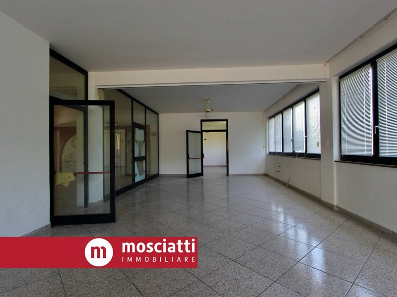 L'immobile, di grande metratura, è composto da un ingresso al piano terra con un ripostiglio, comoda scala che porta al primo piano dove sviluppa l'ufficio composto da grandi locali, tre bagni, oltre ad una VERANDA coperta, per una metratura totale di circa mq. 450; per l'abbattimento delle barriere architettoniche è stato istallato l'ASCENSORE ed è inoltre presente la SCALA ANTINCENDIO sul retro.