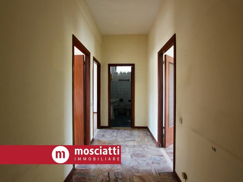 Accedendo al primo piano c'è il primo appartamento, di mq. 84 circa, composto da ingresso, soggiorno e cucina, con accesso al balcone, uno studio, due camere di cui una con grande TERRAZZO, e un bagno;