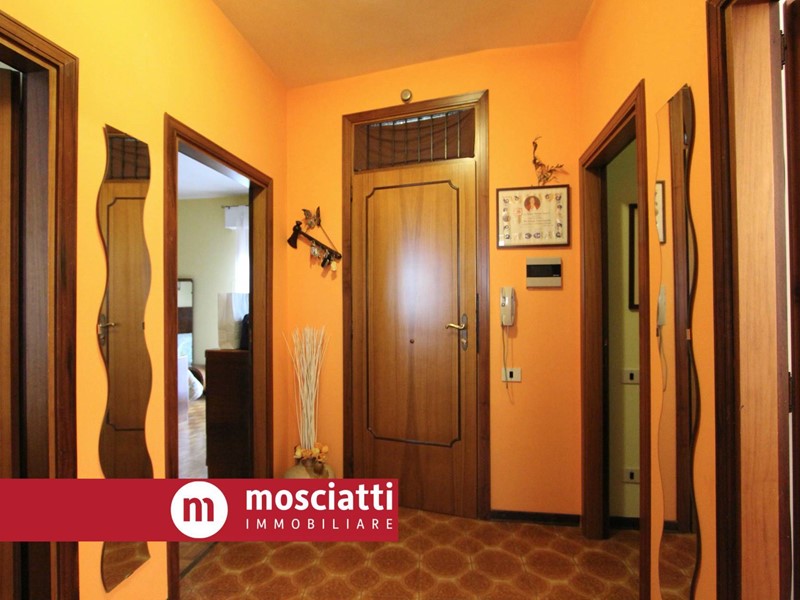 Nei pressi della Piazza principale, vicinissimo a tutti i servizi e comodo per il garage, questo appartamento di mq. 70 circa si compone così: ingresso, soggiorno, cucina a vista, con accesso al balcone che affaccia sulle campagne, due camere e bagno.
