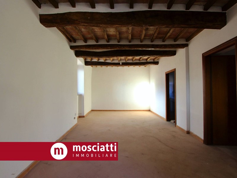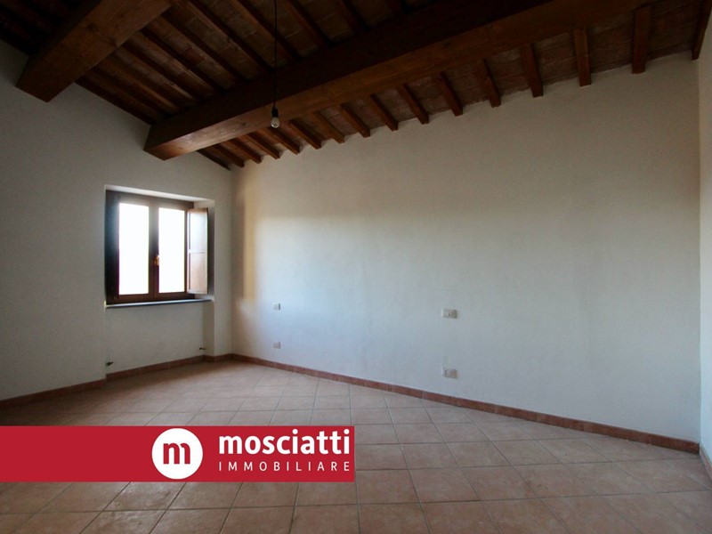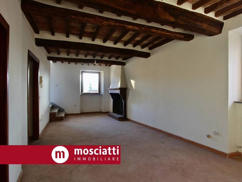 L'abitazione si dispone su tre piani, al piano rialzato dove sviluppa un'ampia zona giorno con camino, troviamo la cucina, uno studio e un bagno; un balcone permette l'affaccio sulla piazzetta e vista a 360° sulle campagne circostanti, continuando poi al piano superiore sviluppa la zona notte con tre camere, e altro bagno.