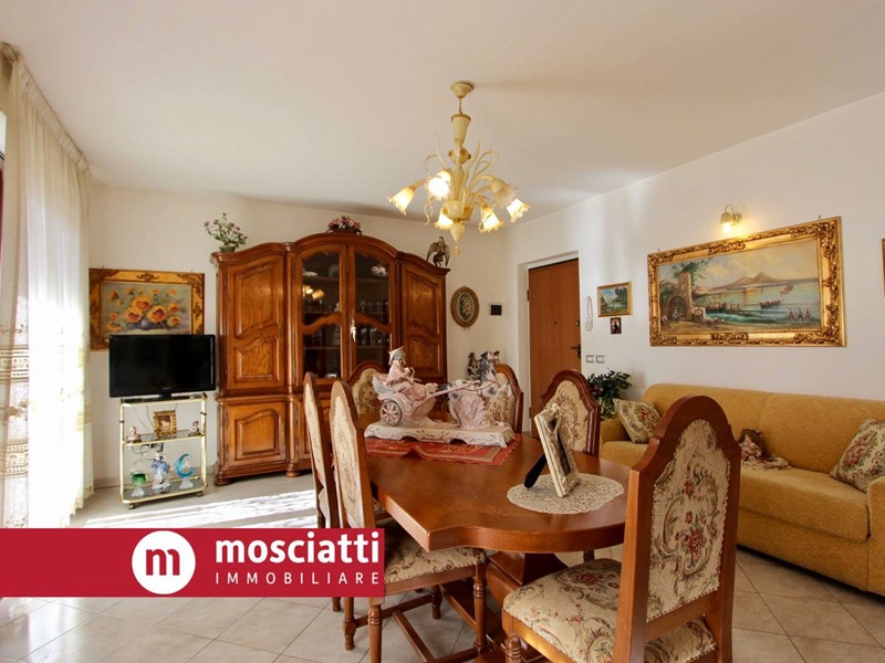 L'abitazione, di mq. 100 circa, è composta come segue: ingresso, soggiorno e cucina abitabile entrambi con ampio balcone, disimpegno zona notte, tre camere, di cui una con altro balcone e due bagni entrambi finestrati.
