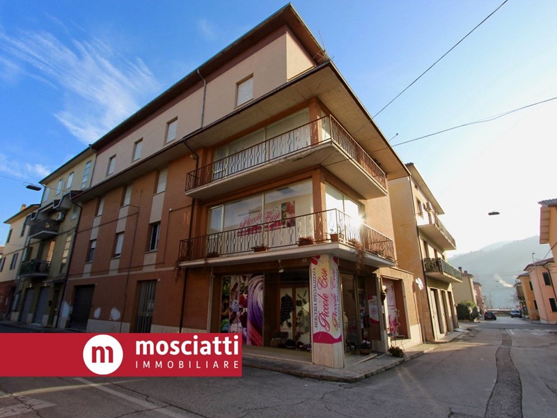 Castelraimondo, via IV Novembre angolo via degli Eroi, vendiamo locale commerciale con garage e depositi.