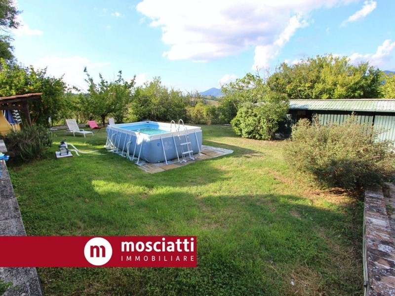 Esanatoglia, Loc. Coste Falcotto, vendiamo abitazione con giardino e terreno agricolo circostante. La proprietà immersa nel verde si trova in aperta campagna tra Matelica ed Esanatoglia. L'abitazione, affiancata ma completamente autonoma, è stata recentemente ristrutturata, si dispone su due piani ed è cosi composta: Piano terra ingresso su soggiorno, cucina, camera, studio, bagno e ripostiglio; Piano primo tre camere di cui una con bagno interno, sala hobby e altro bagno. All'esterno si trova una tettoia per parcheggio auto, la cucina rustica e un vano tecnico, oltre ad una rimessa attrezzi agricoli. La corte che completa la proprietà è interamente recintata ed è adibita in parte a lastrico per passaggio auto e in parte a giardino molto riservato e panoramico, nel quale è presente una zona attrezzata per il barbecue e dove in estate gli attuali proprietari realizzano una zona relax con piscina e sdraio. Superfici: Abitazione mq. 170 ca. Rustico: mq. 23 ca. Tettoia mq. 28 ca. Giardino/corte mq. 1.021 ca. Terreno agricolo: mq. 18.110 ca. Classe energetica: NDPrezzo richiesto: euro 250.000 trattabili Cod. 3017 La visita alla proprietà sarà fissata previo incontro informativo in agenzia.