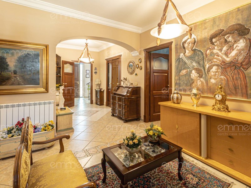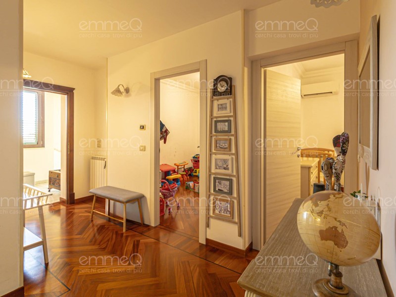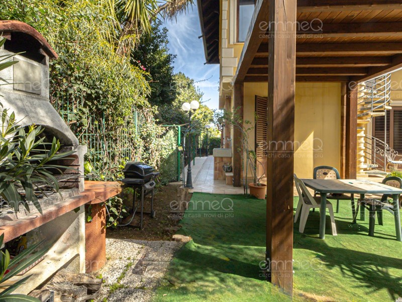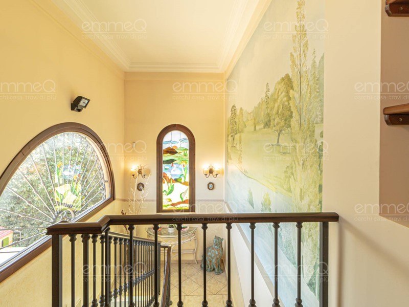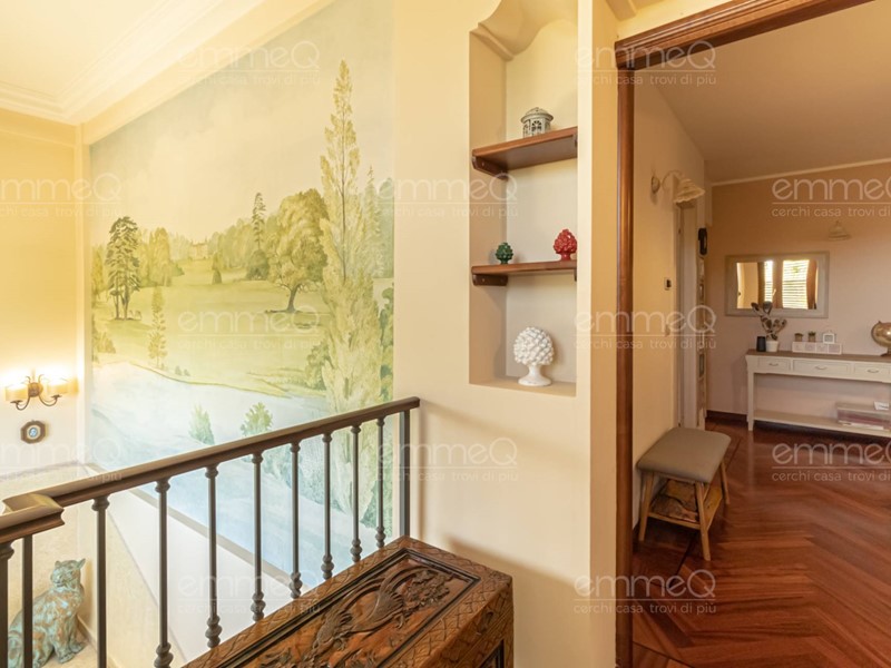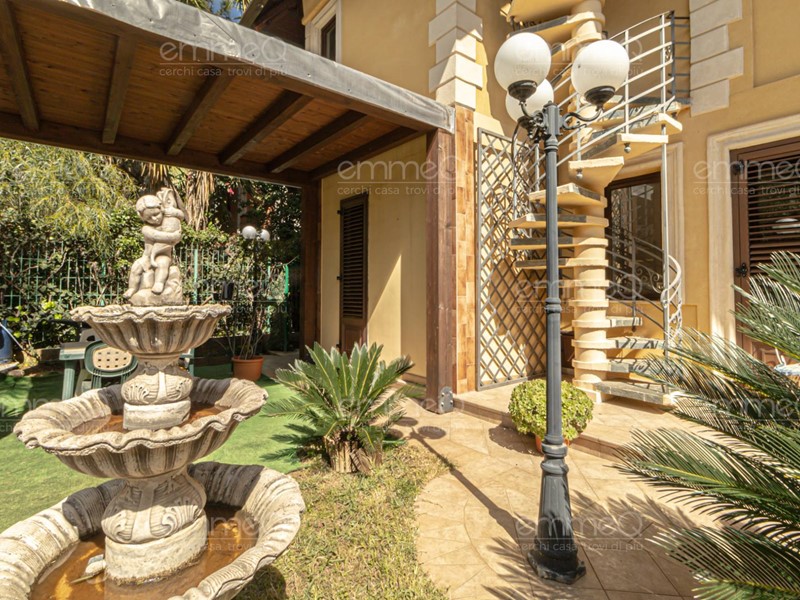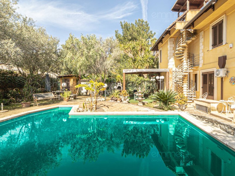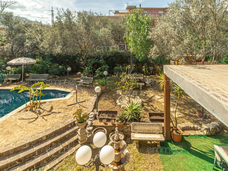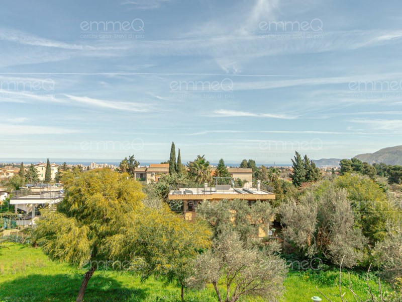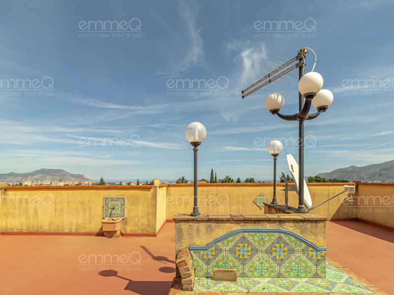 L'ampio spazio a disposizione consente di suddividere gli ambienti in maniera razionale e funzionale. La superficie totale di circa 430 metri quadrati è suddivisa in 19 vani catastali, tra cui 12 camere da letto, 6 bagni tutti gli accessori annessi e che includono ampi spazi per poter accogliere anche 3 famiglie. Ogni ambiente è ben illuminato grazie alle numerose finestre con taglio termico presenti e può vantare finiture di alta qualità tutt'oggi moderne e apprezzabili, offrendo un'atmosfera accogliente e confortevole. La disposizione e così composta: dal cancello carrabile si può accedere posteggiando 2 vetture mentre una terza in uno spazio assegnato esterno. La pavimentazione in porfido e betonella per tutto lo spazio esterno ne amplifica la bellezza. Il piano cantinato presenta 2 ingressi di cui uno sul terrazzo esterno in gres e coperto in parte da percolato, poi l'accesso alla sala da pranzo, la cucina abitabile in muratura e maioliche, separata da porta scorrevole, la sala TV open space, la camera da letto un wc doccia, lo studiolo, il ripostiglio sottoscala, ed un'altra cameretta con retro-uscita alla cantina esterna. Il piano rialzato presenta un' altro terrazzo ampio con l'ingresso su salone doppio e uscita sul giardino adibito a zona relax con barbecue varie sedute il bagno doccia e l'incantevole piscina; ancora due altre camere da letto il disimpegno 2 bagni la lavanderia la cucina abitabile con angolo cottura ricavato in veranda. Il primo piano interamente parquettato comprende l'ingresso su ampio disimpegno 2 camere da letto, cameretta, bagno con complementi d'arredo e con doppio lavello, la cucina abitabile con angolo cottura componibile ed un altro servizio. La luminosità della scala interna che raggruppa nell'insieme i tre piani è raggiante e le finestre ne migliorano la bellezza. Esternamente dal giardino si trova a altresì una comodissima scala a chiocciola che conduce unicamente al meraviglioso terrazzo panoramico vista mare e tutta la città di Palermo, nell'insieme una profondità a 360° a una copertura dell'intera struttura.