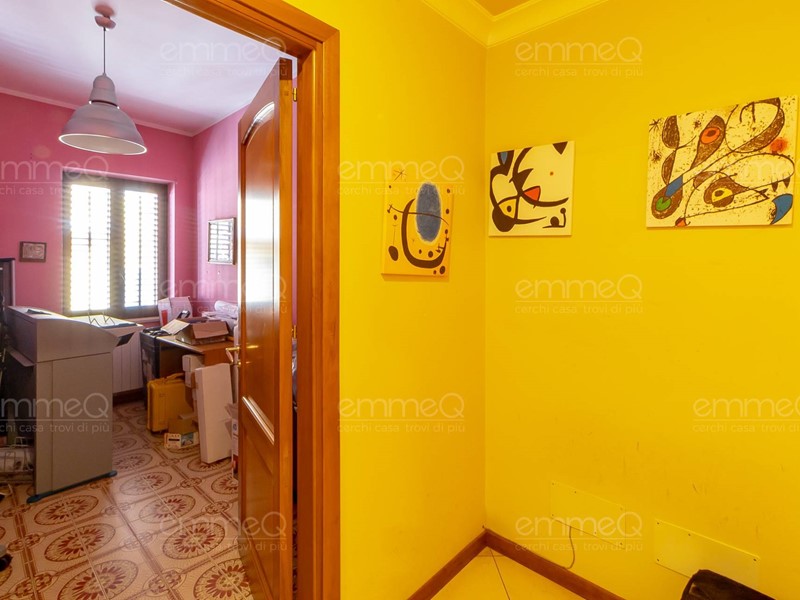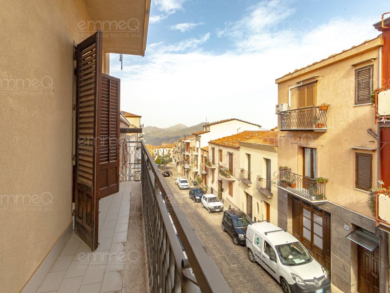 La scala di accesso che accomuna le unità è comoda e spaziosa in marmo bianco e con passamano in legno; dall'ingresso in comune si accede tramite due rampe al primo piano composto da ingresso su sala da pranzo pari a due vani con cucinotto attiguo e balcone lungo a ovest panoramico sul paese e il bosco madonita poi a seguire un salone doppio balconato su prospetto principale, il bagno il ripostiglio e la cameretta con altezza media nell'insieme di 2.70 mt.