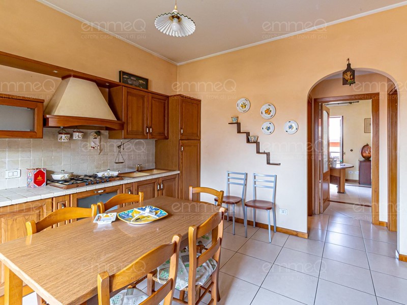 La vista da qui è ancora migliore su entrambi i prospetti mentre la caratteristica è il tetto spiovente con travi a vista con il punto più basso a 2.05 mt e quello più alto a 3.05 mt. Caratteristiche di pregio sono le porte interne gli infissi a taglio termico gli elementi dei riscaldamenti moderni alimentati da due caldaie a metano separate per piano, pavimenti misti in cotto e gres, videocitofoni. Stile moderno ed elegante, con una distribuzione degli spazi ottimale.