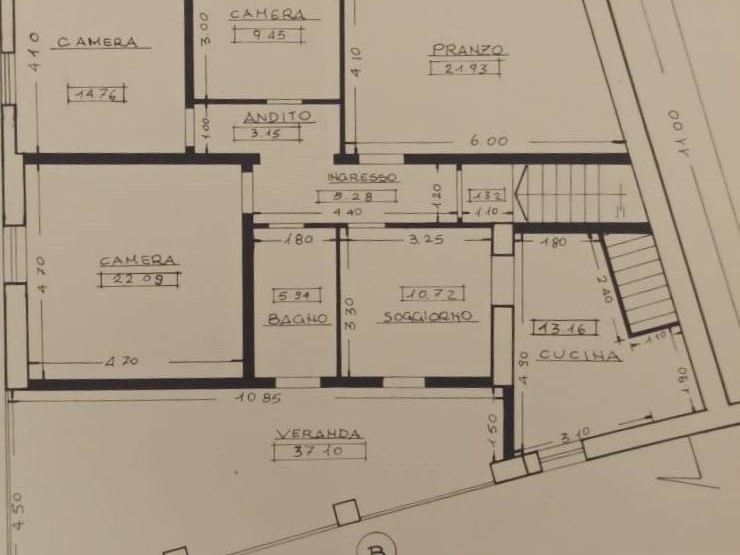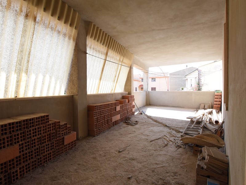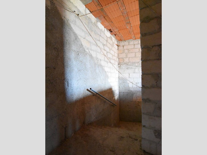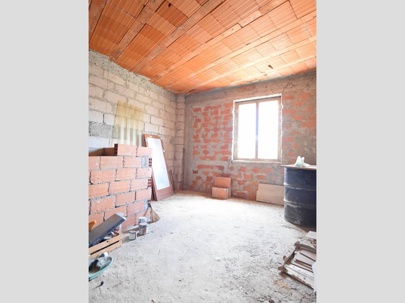 Limmobile è composto da tre camere da letto, due singole e una matrimoniale, un'ampia sala, un soggiorno con caminetto, una cucina e un bagno completo e finestrato nel piano inferiore, mentre il piano superiore, che ancora risulta in grezzo all'interno, potrebbe essere composto da tre camere da letto, una sala, un soggiorno, una cucina separa e un bagno, oltre ad un terrazzo vivibile.