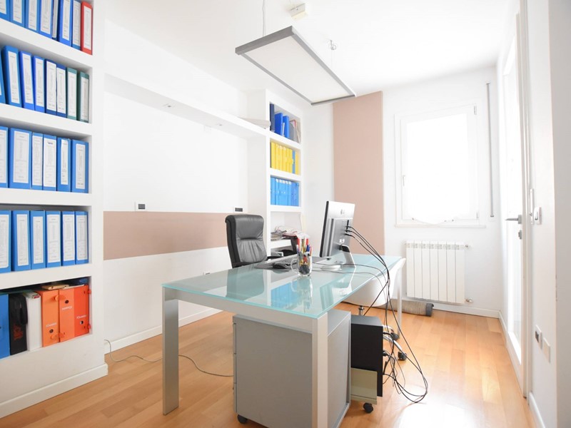 Lappartamento, di 93 mq, attualmente utilizzato come studio, si apre con unampia sala luminosa che conduce al cortile privato sul retro. Un disimpegno ben organizzato collega lingresso ai due bagni e a tre camere, di cui una con accesso diretto a un terrazzo riservato.Finiture e impiantisticaInserito in un distinto palazzo di recente costruzione, limmobile offre spazi moderni e funzionali, pronti per essere personalizzati in base alle tue esigenze. Infissi in pvc con vetrocamera e pavimento in parquet, riscaldamento con termosifoni in alluminio alimentati a gas di città.I punti di forza