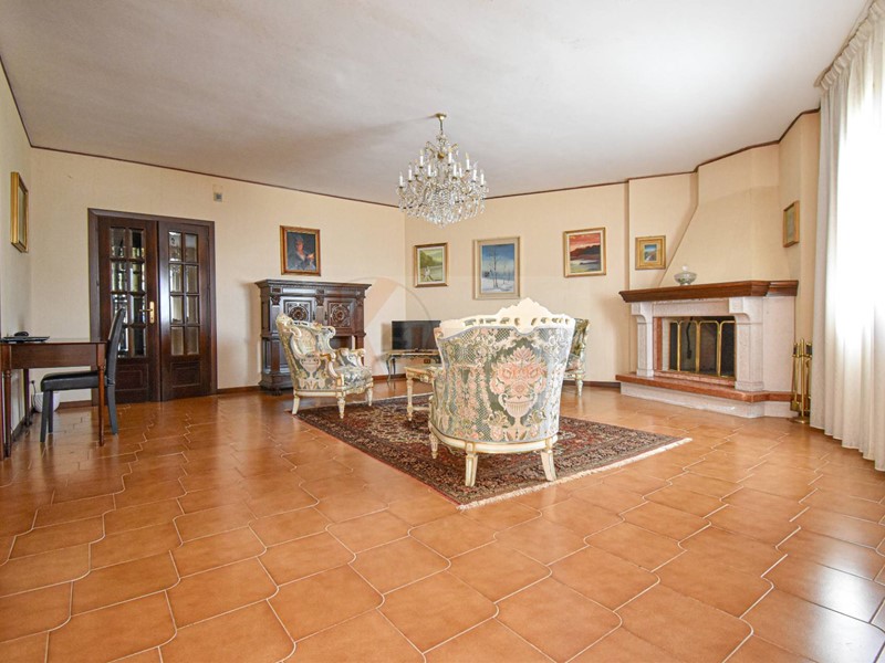 La villa si sviluppa su oltre 400 mq ed è disposta su tre livelli. Lingresso principale conduce a un salone accogliente con camino decorato, collegato a una zona riservata tramite un elegante arco. Il tinello si affaccia su una veranda esclusiva con vista piscina e area barbecue con grande forno/camino. La cucina è separata e funzionale. Il piano terra ospita anche due grandi camere da letto, una stanza guardaroba, un ripostiglio e due bagni finestrati, uno con vasca e uno con doccia.