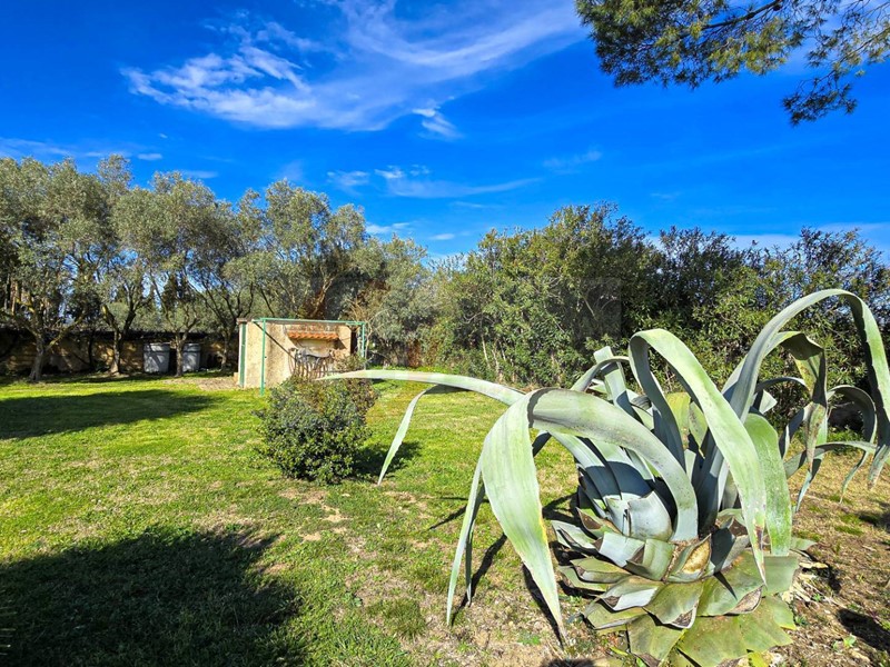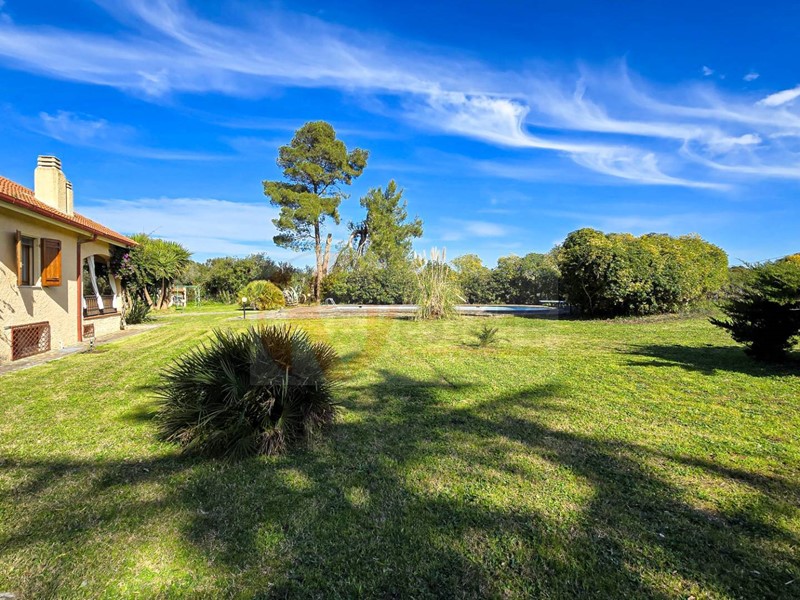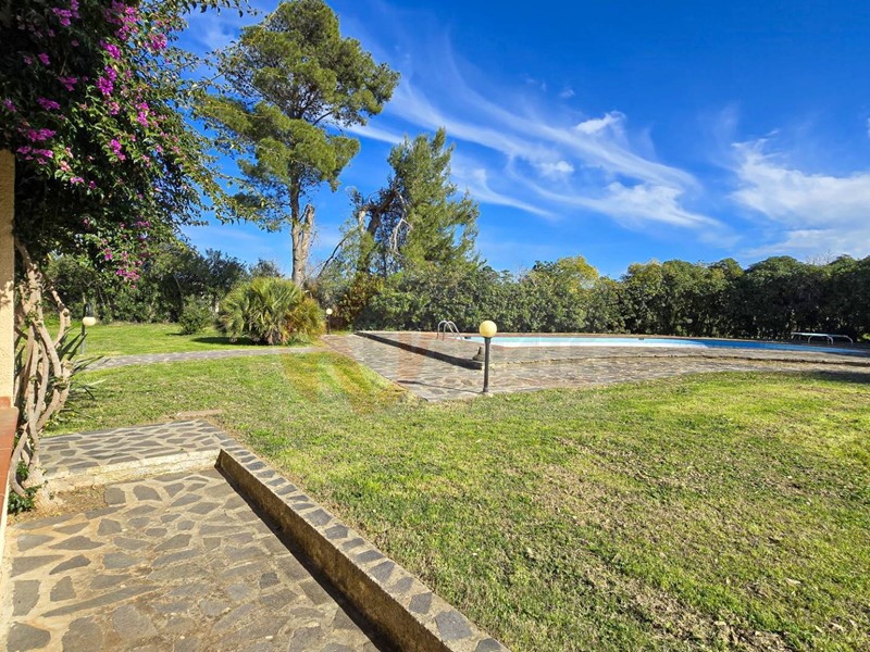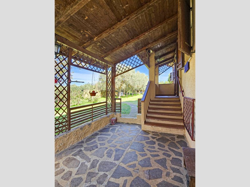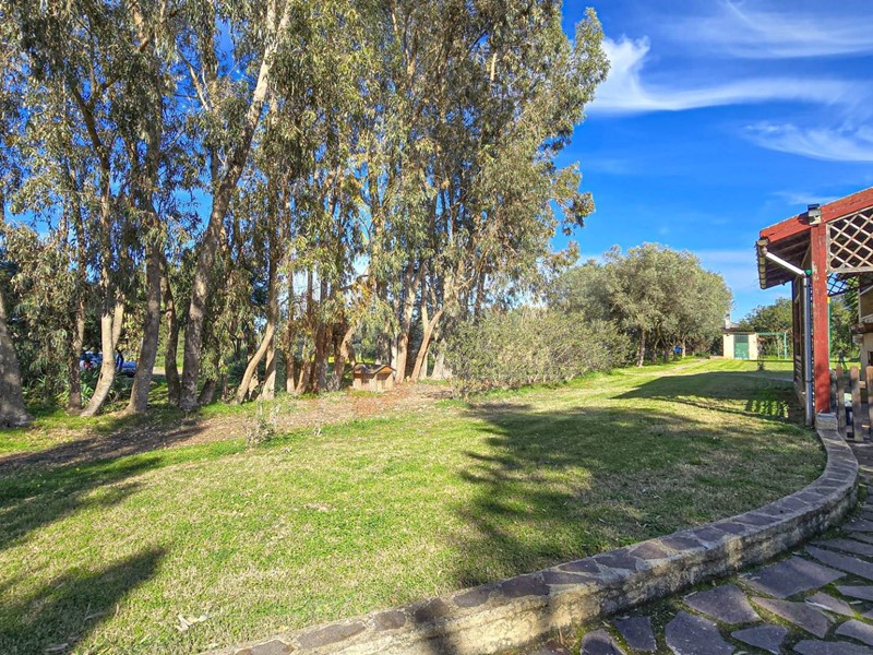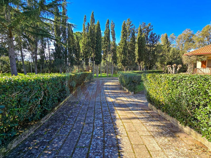 La proprietà si estende su circa un ettaro e mezzo di terreno, impreziosito da siepi impeccabili, piante ornamentali, un frutteto e un vigneto. La piscina dalla forma sinuosa, circondata da pavimentazione in pietra, dona alla tenuta un fascino unico. Sono presenti diverse verande vivibili e un ampio piazzale cementato sul retro.