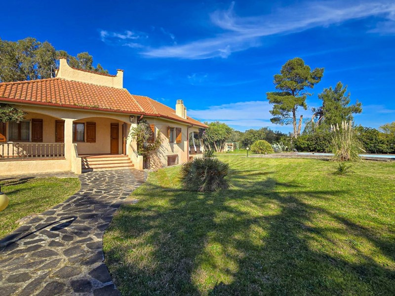 Maccia D'Agliastru, a pochi minuti dalla città, una proprietà esclusiva circondata dal verde. Villa su tre livelli, piscina suggestiva, vigneto e giardino curato.