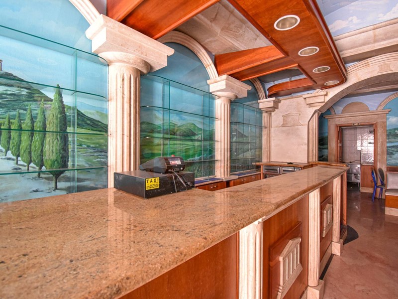 Le colonne e le volte dipinte donano un tocco di eleganza e carattere, creando un ambiente accogliente e distintivo. Un locale che conserva il fascino della tradizione, perfetto per chi cerca un'attività con unanima autentica.