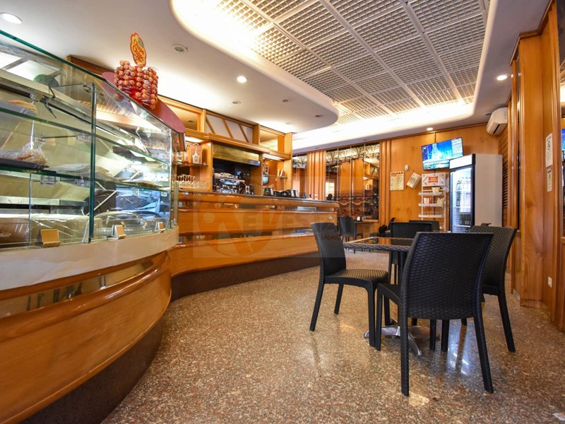 Il locale si sviluppa su due livelli. Al piano terra, con accesso diretto dalla strada, si trova larea principale del bar, caratterizzata da un grande bancone in legno, zona tavolini interni, ampi spazi per frigoriferi e attrezzature. Allesterno, sotto i portici del palazzo, sono disponibili ulteriori spazi per tavolini al servizio dei clienti.