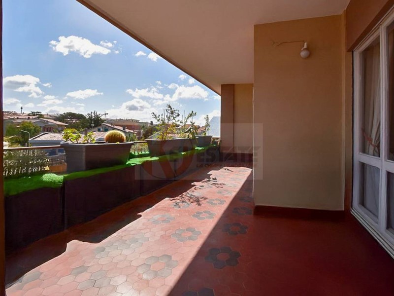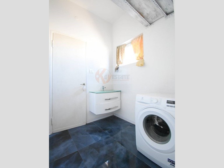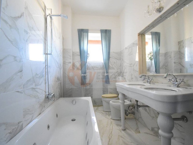 Adiacente al soggiorno, una spaziosa cucina abitabile offre ulteriore accesso a un terrazzo verandato panoramico, ideale per colazioni luminose e pratiche attività quotidiane. Completa la zona servizi una comoda dispensa.