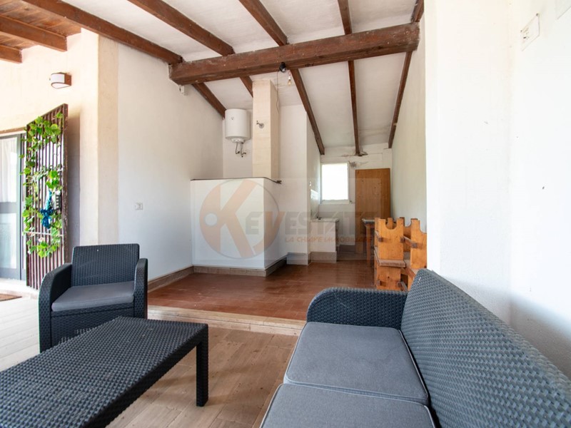 L'abitazione, di circa 37 mq, accatastata come C/2, è composta da un'accogliente zona living con caminetto e cucina, oltre a un bagno completo e finestrato. All'esterno, una ampia veranda con angolo cottura e punto acqua regala uno spazio ideale per rilassarsi e godersi il paesaggio circostante.