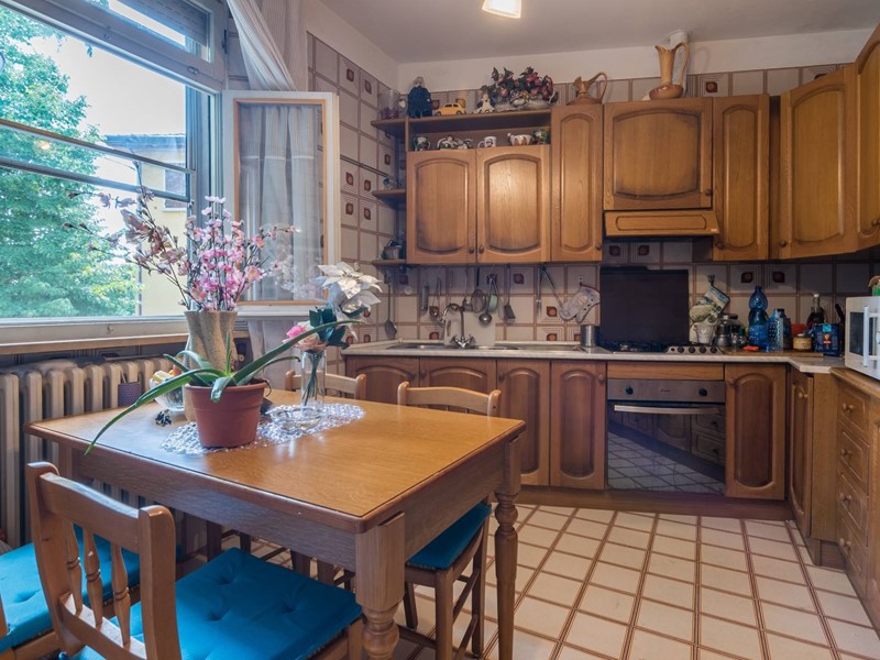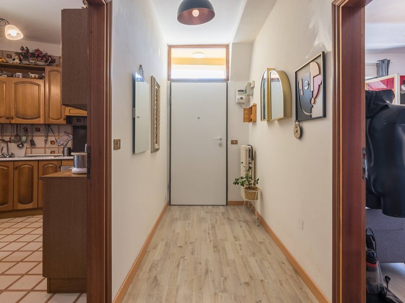 Lingresso si apre su una comoda cucina abitabile, completamente arredata ed equipaggiata, perfetta per la vita quotidiana e i momenti conviviali.