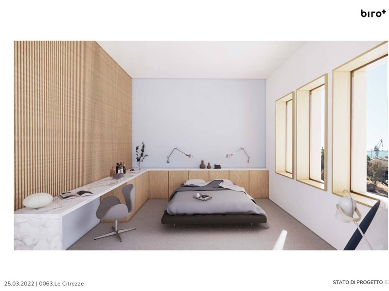 Ledificio A accoglie al suo interno reception, ristorante e bar per 80 posti, sale relax e sala conferenze con servizi autonomi per circa 150 posti. Piano primo e secondo prevedono circa 22 camere per piano di diversa tipologia: deluxe, suite e junior suite con metrature da 25/30/50mq. In ultimo il terrazzo ospita solarium con vista mare. Al piano seminterrato, sono collocati i depositi e la spa con spogliatoi e accesso indipendente.
