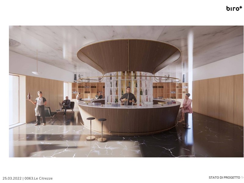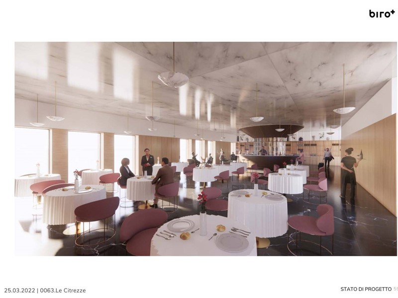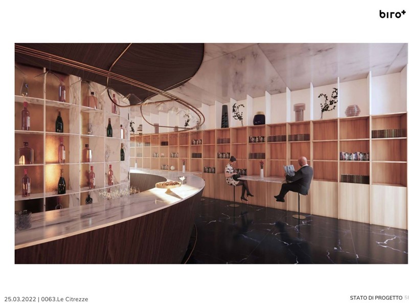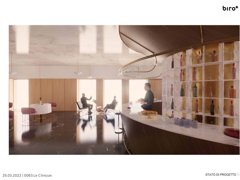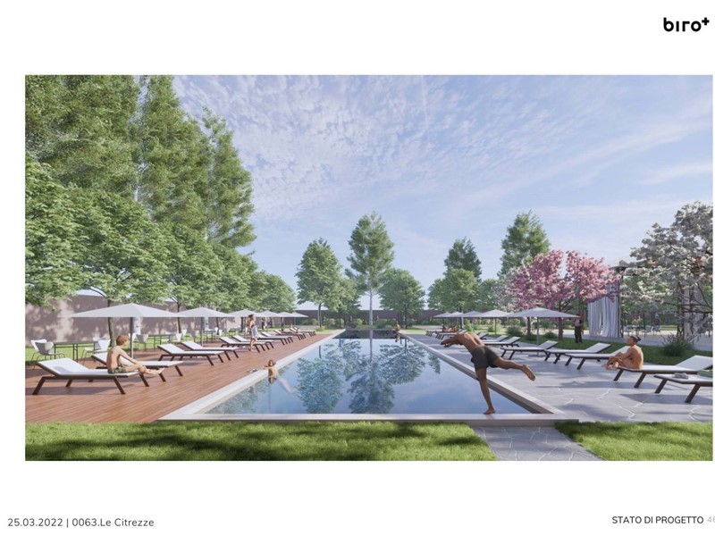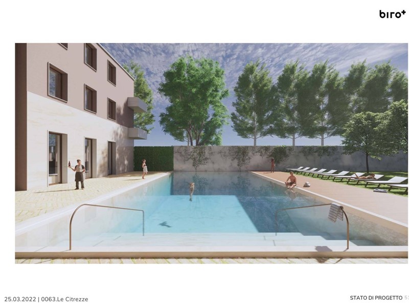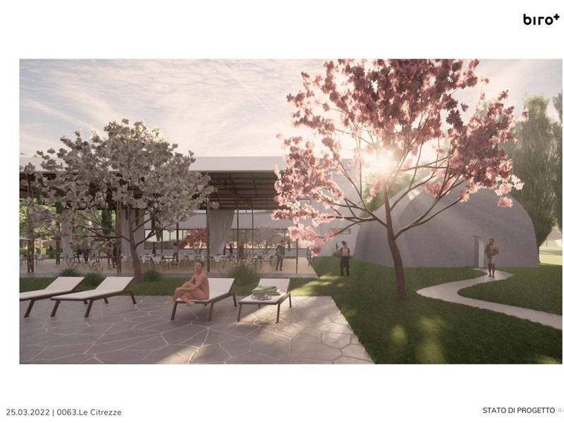 Ledificio B prevede al piano terra: reception sala pranzo/colazione, e spa dedicata con spogliatoi e diretto accesso allarea esterna con piscina riservata al centro benessere. A primo e secondo piano si prevedono 8 suite di livello Superior.