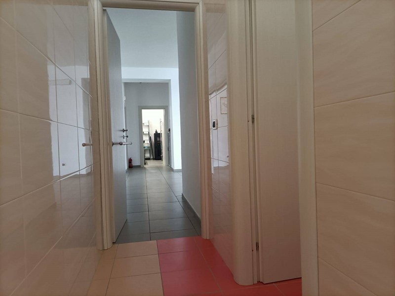 L'appartamento è composto da un ampio ingresso che conduce ad un luminoso salone ideale per sale riunioni e meeting aziendali. Inoltre sono presenti n.3 bagni rifiniti e dotati di servizi igienici moderni, n. 1 bagno padronale, ripostiglio, l'immobile è dotato di impianto di aria condizionata caldo/freddo, ascensore e doppio accesso.
