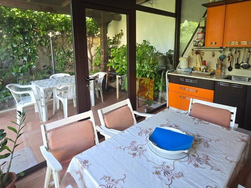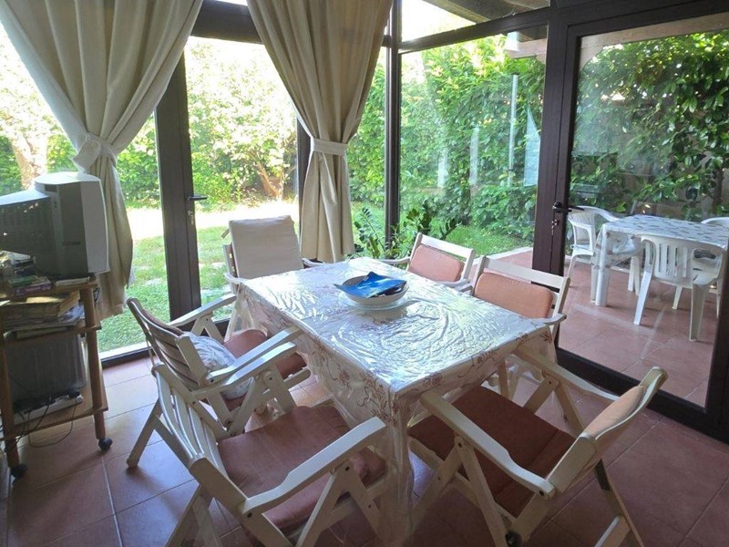 Proponiamo in Vendita a Taranto - Frazione Lama in Via Girasoli, 239 villa a schiera in residence condominiale, su due livelli, con giardino di circa 200 mt, veranda nell'area antistante e ampio gazebo sul retro, soggiorno living, 3 camere da letto, 2 bagni (uno con doccia, uno con vasca idromassaggio), cucina abitabile con accesso diretto sul gazebo posto sul retro, 2 ripostigli, terrazza con splendida vista mare. La pavimentazione in cotto è uniforme . Gli infissi sono in PVC con persiane in alluminio. Il riscaldamento è autonomo. Climatizzata. L'immobile è regolarmente collegato al sistema idrico. Il pretrattamento delle acque nere avviene attraverso vasca settica tipo imhoff (a breve è previsto il collegamento alla rete fognaria). Disponibili 2 posti auto su area antistante il residence. Pineta con area giochi e relax su area retrostante residence. Libera a rogito.