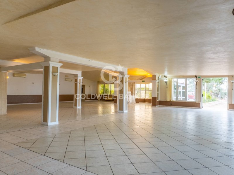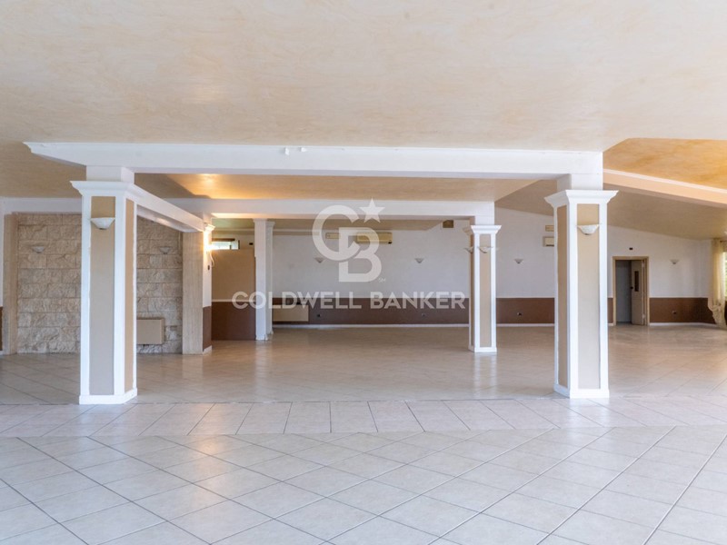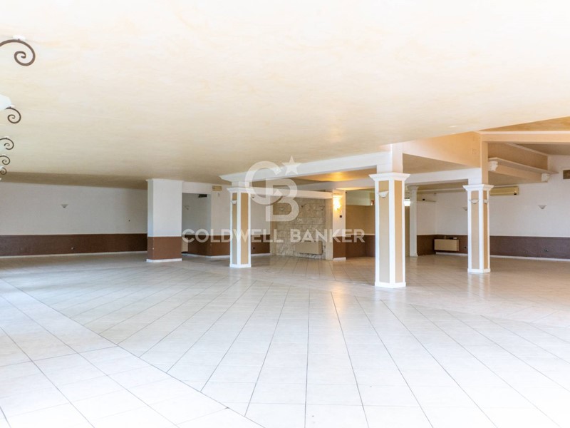 Lingresso, completamente recintato, si apre su un grande parcheggio cementificato. Al piano terra si sviluppa un ambiente di circa 500 mq, in cui troviamo ampie sale ristorazione, bagni per il pubblico, una spaziosa cucina professionale, vari ambienti da adibire a dispense o magazzino, un bagno per il personale e una cucina esterna attrezzata con forno a legna, ideale per pizzeria. Completa il piano un cortile retrostante, utile per carico/scarico o per ulteriore utilizzo esterno.