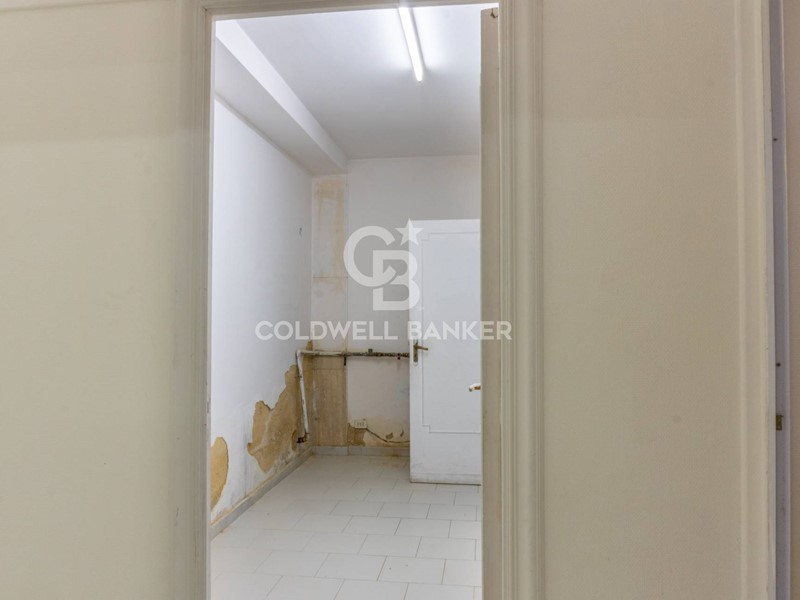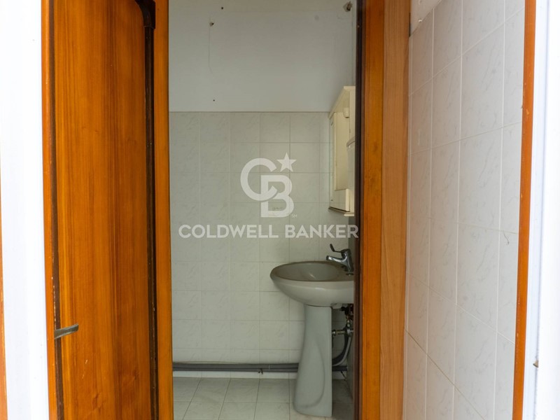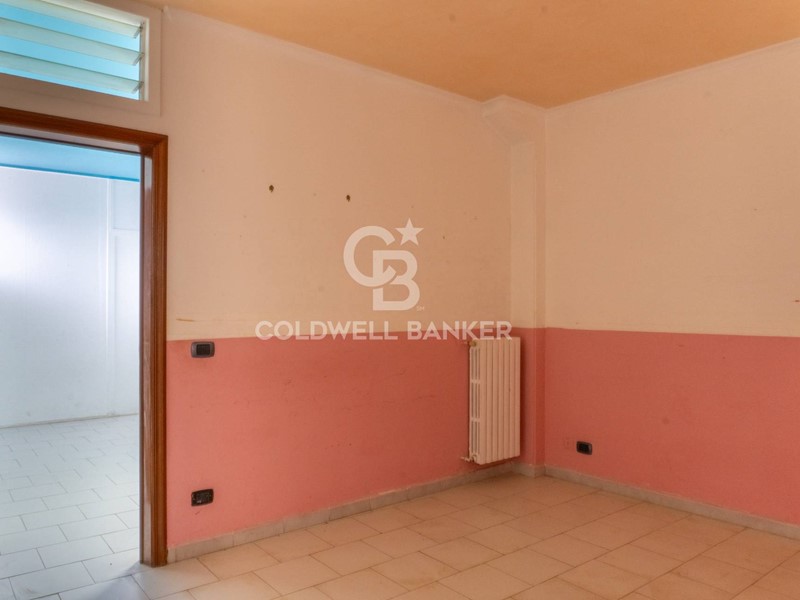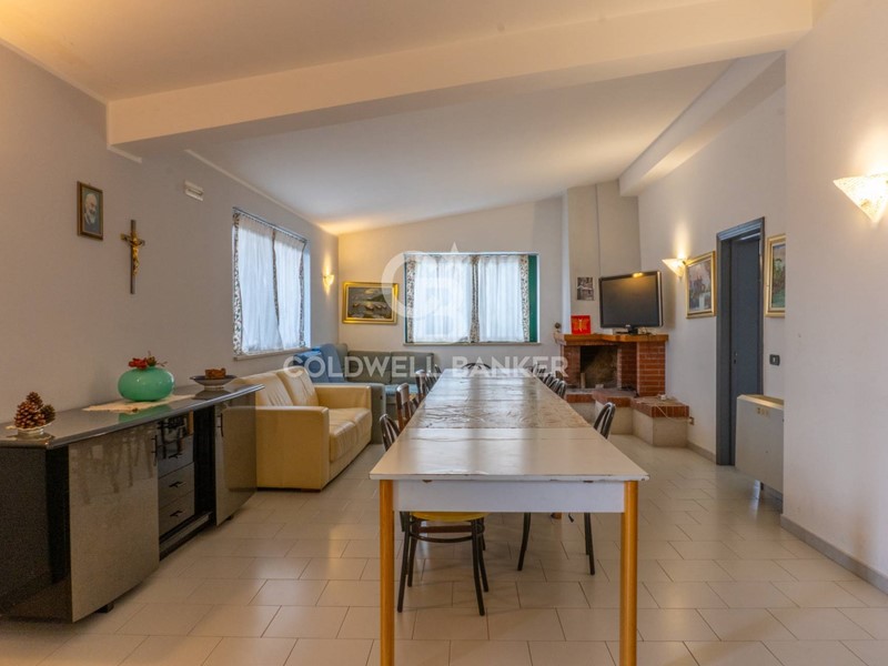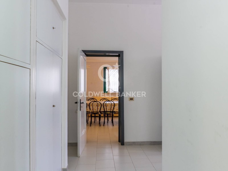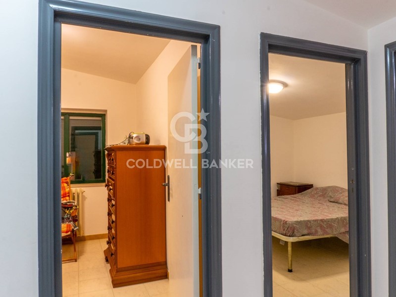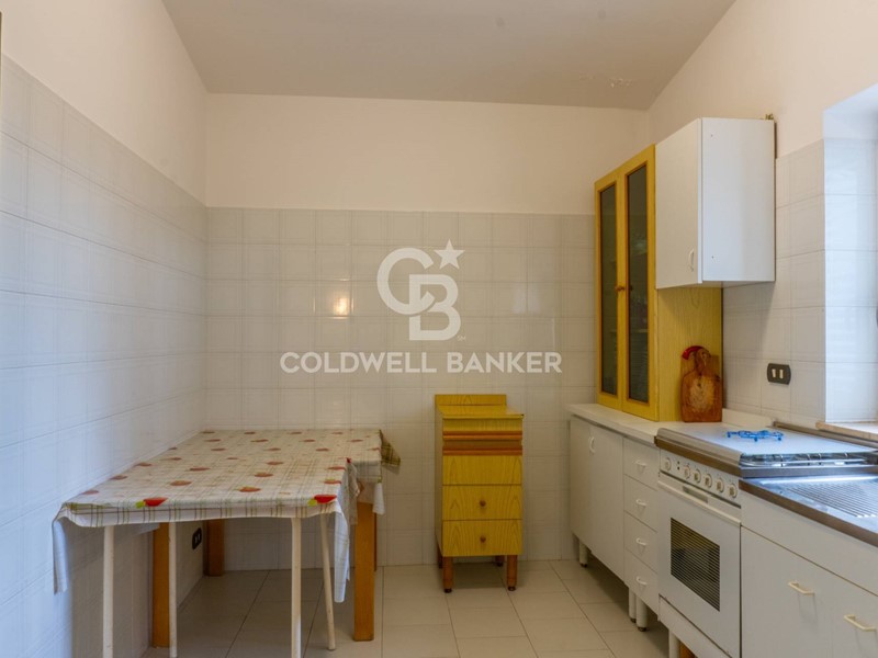 Al primo piano, un appartamento residenziale offre una graziosa veranda, ingresso su zona soggiorno/pranzo con cucinino, tre camere da letto e un bagno finestrato.