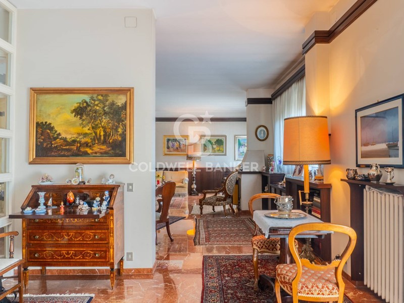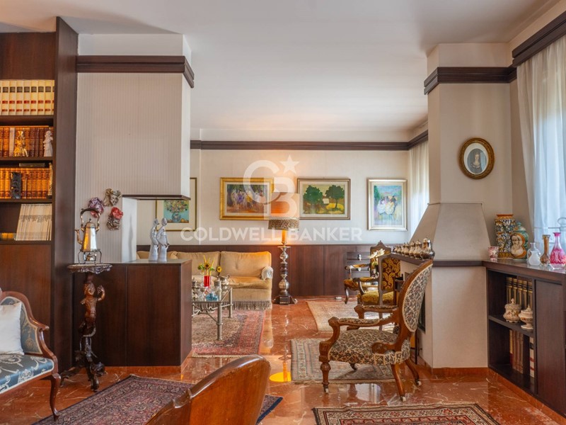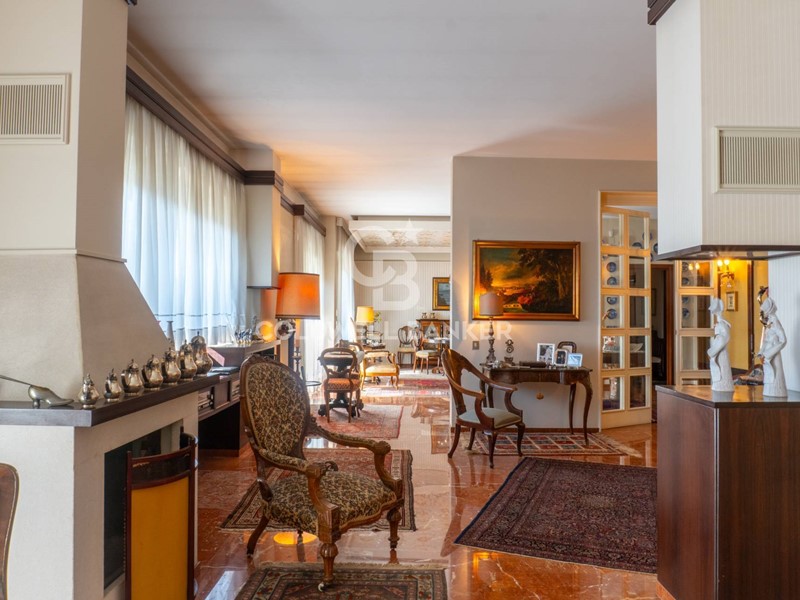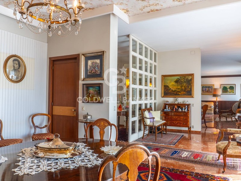 Limmobile si distingue per una distribuzione funzionale degli ambienti e finiture di pregio. Lingresso conduce a un elegante salone doppio, perfetto per ricevere ospiti, affiancato da un ampio soggiorno. La presenza di una doppia cucina abitabile garantisce praticità e versatilità.