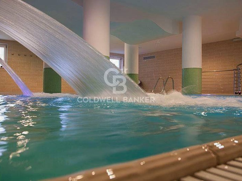 Area wellness e termale interna: dotata di piscina riscaldata, sauna, bagno turco e spazi ideali per trattamenti termali e riabilitativi, utilizzabili sia in ambito sanitario (fisioterapia, idroterapia, riabilitazione) sia in chiave wellness e SPA.