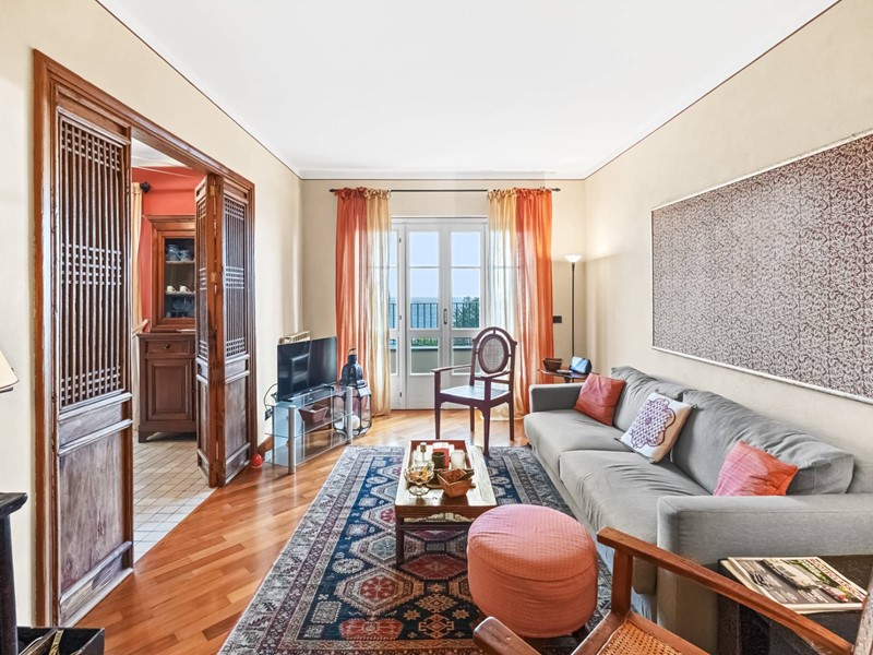 L'ingresso principale introduce in un ampio soggiorno luminoso con accesso diretto a un terrazzino privato, il luogo ideale per ammirare panorami marini senza eguali.