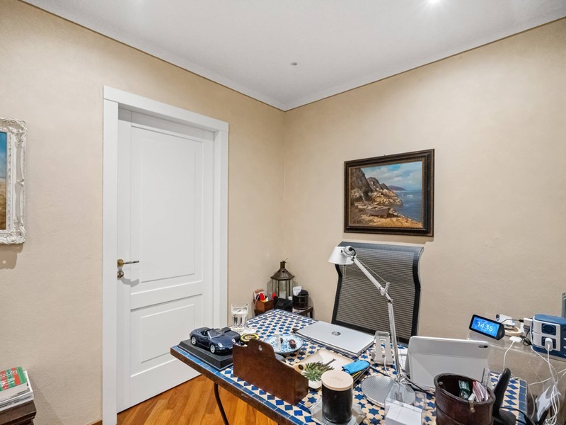 La cucina abitabile, pensata per unire funzionalità ed eleganza, diventa il cuore della casa, mentre le due camere matrimoniali, una delle quali con cabina armadio e studio integrato, offrono spazi raffinati e accoglienti.