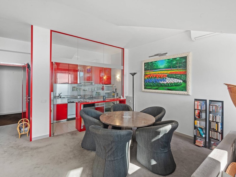La cucina a vista, sapientemente integrata nello spazio del salone, è completamente attrezzata e crea un ambiente ideale per cucinare e intrattenere gli ospiti.