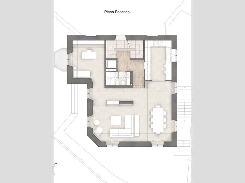 L'appartamento in questione, situato al piano secondo e terzo, è stato progettato con grande attenzione ai dettagli: