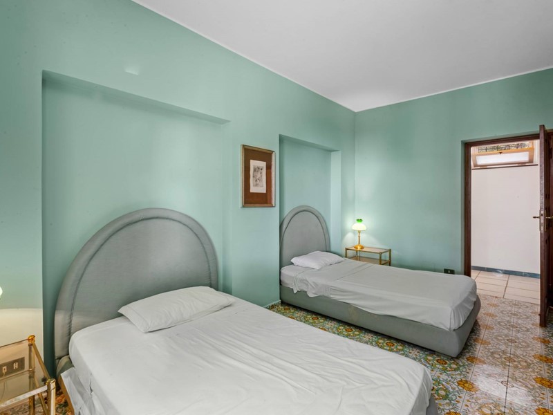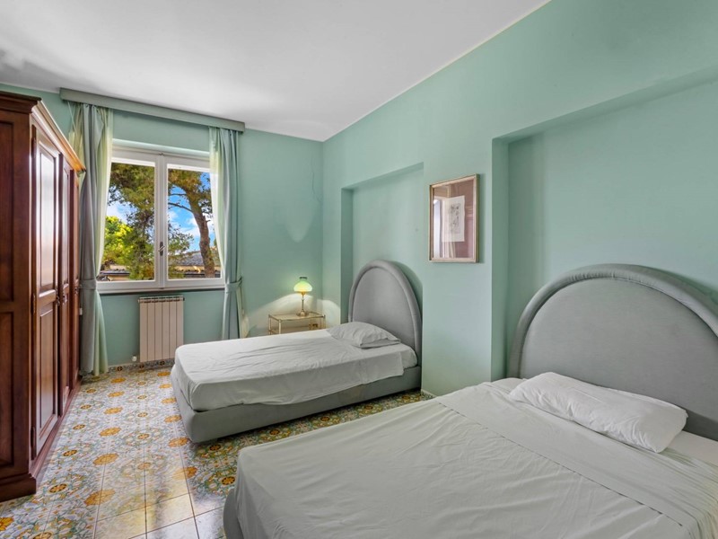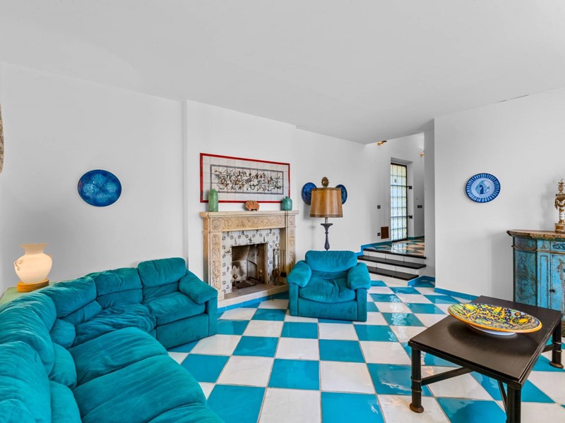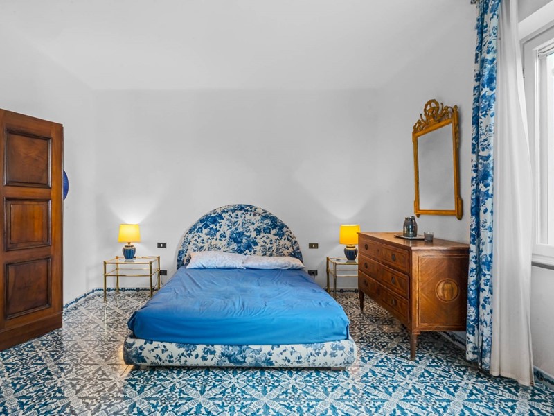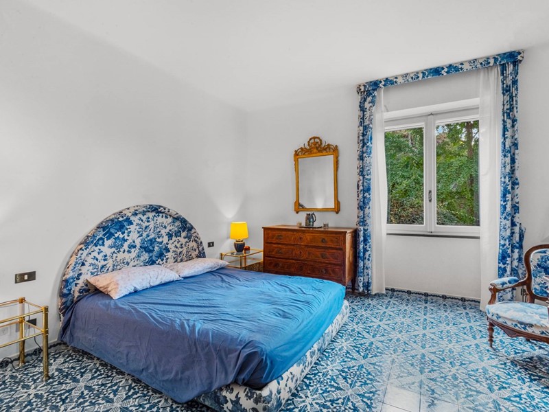Il piano terra si apre su un maestoso salone triplo, illuminato da grandi finestre ad arco in stile francese che si affacciano sul giardino e sui terrazzi, decorati con pregiate maioliche artigianali. La cucina, anch'essa dotata di accesso diretto a una zona di servizio esterna, si collega armoniosamente agli altri ambienti. Su questo livello si trovano due camere da letto, tra cui una spaziosa suite padronale con accesso privato al giardino, oltre a due bagni e una dependance indipendente, perfetta per gli ospiti, dotata di bagno e lavanderia.